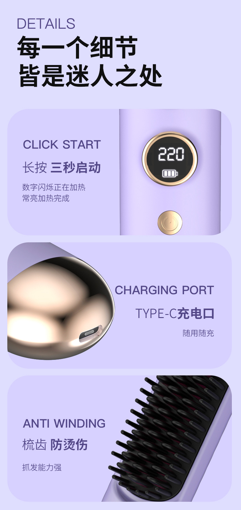 Беспроводная ленивый выпрямитель волос, отрицательные ионы, не повреждает волосы, портативная, перезаряжаемая, двойное назначение