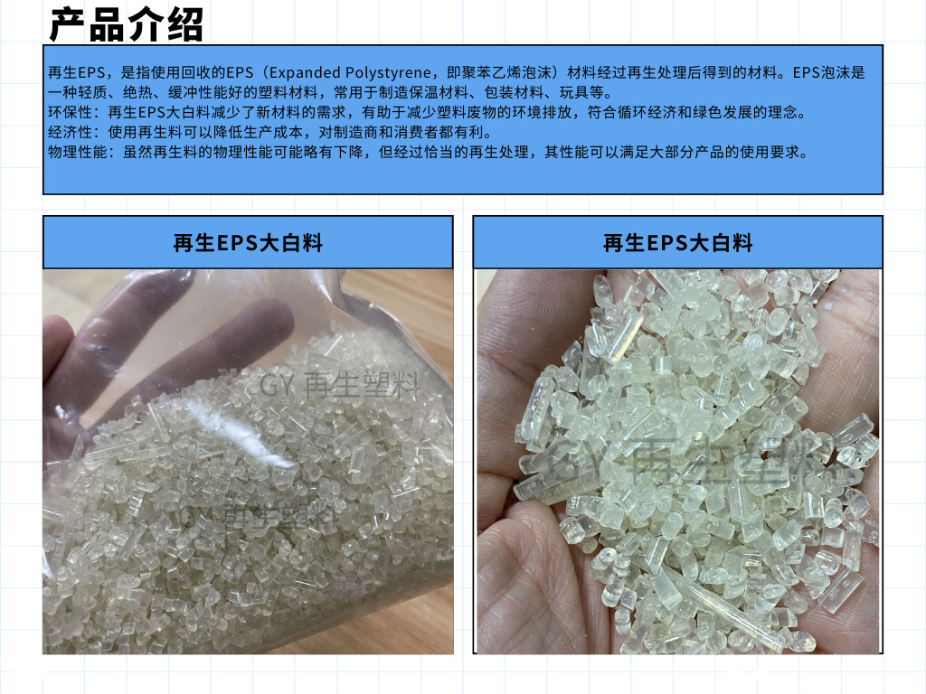 Высококачественный переработанный пластик, гранулы переработанного EPS, большой белый материал, переработанный пенопласт