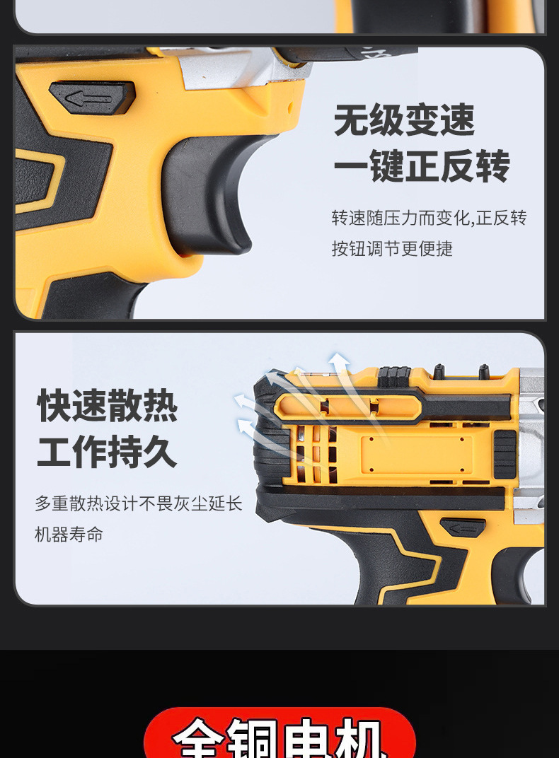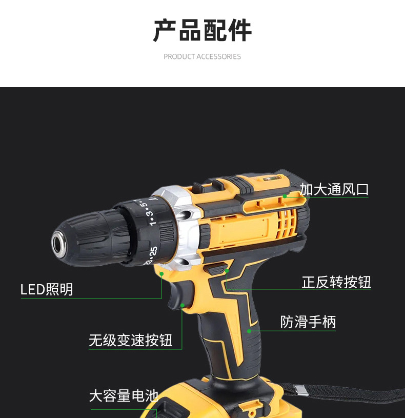 Кросс-бодерные бытовые электрические инструменты, бесщеточная ударная дрель с литиевым аккумулятором, высокомощная промышленная электрическая дрель, многофункциональная перезаряжаемая ручная дрель