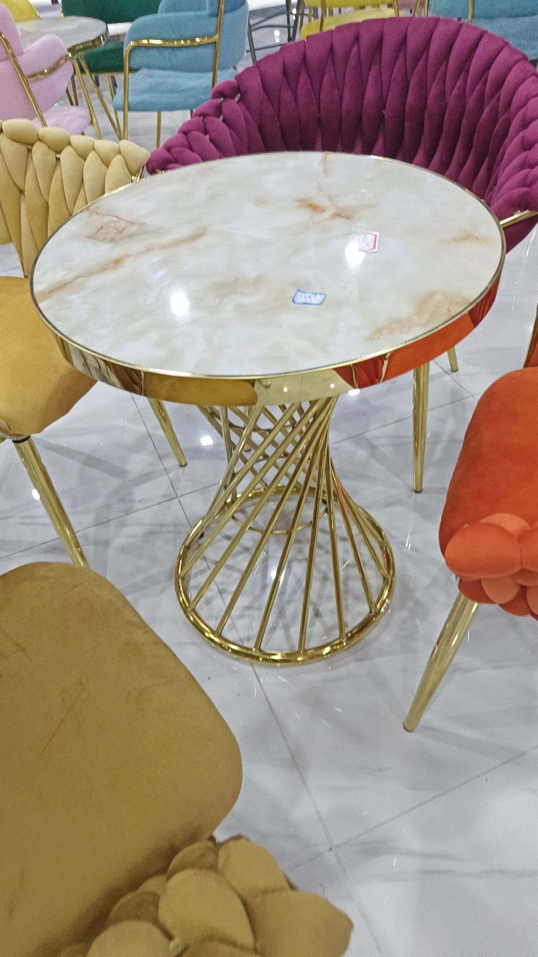 Номер товара Twisted Waist Coffee Table Gold Plated Small Round Table Sofa Side Table Modern Simple Nail Art Shop Acrylic Slab Table