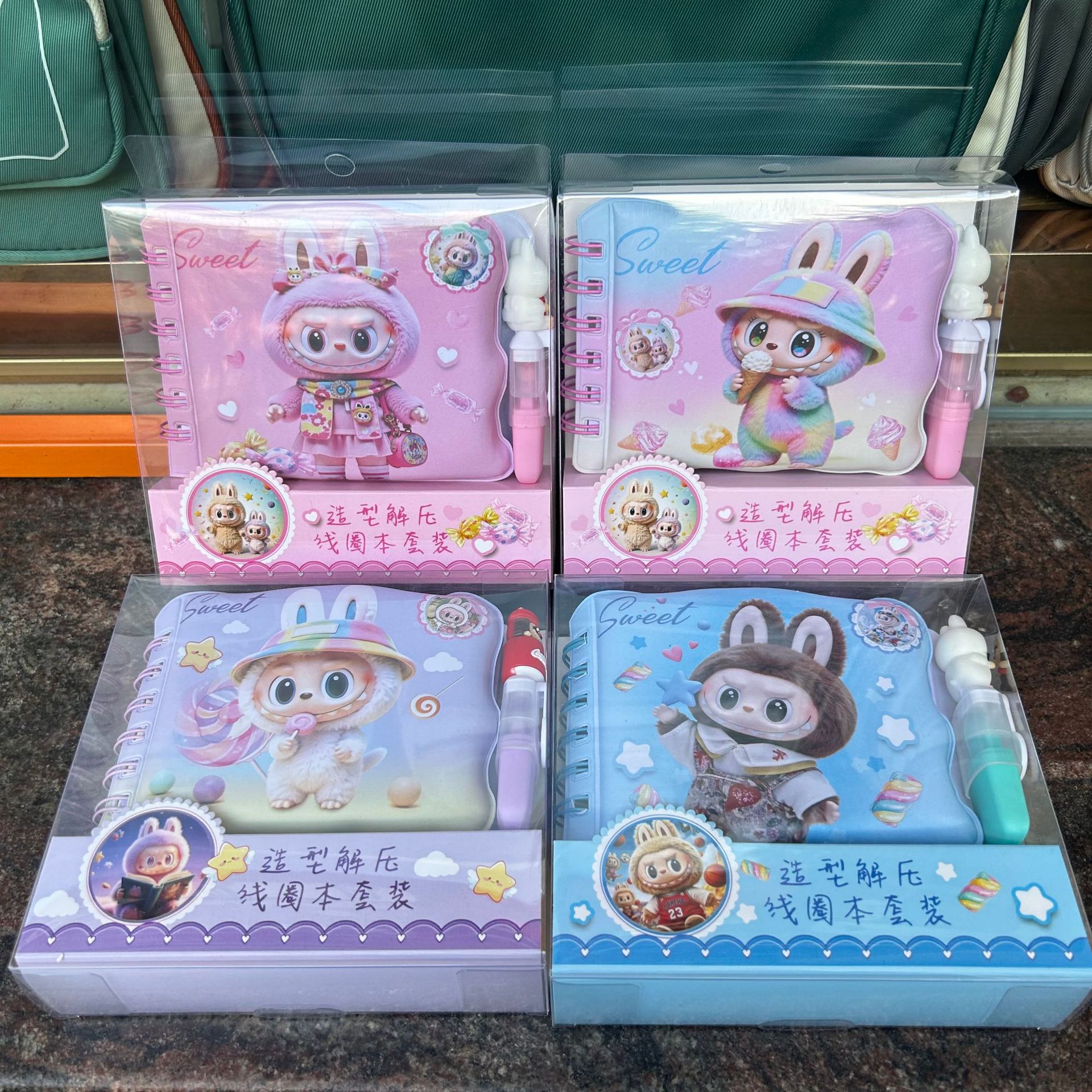 手账礼盒套装 内含彩色内页手账本+贴纸+卡通挂件+胶带+笔