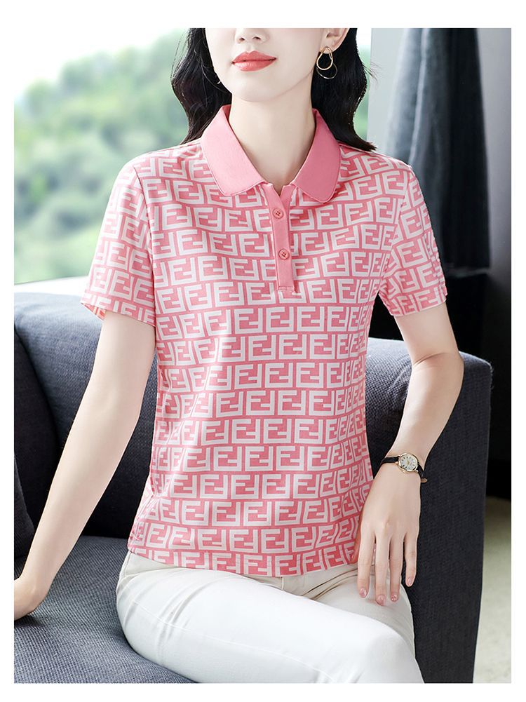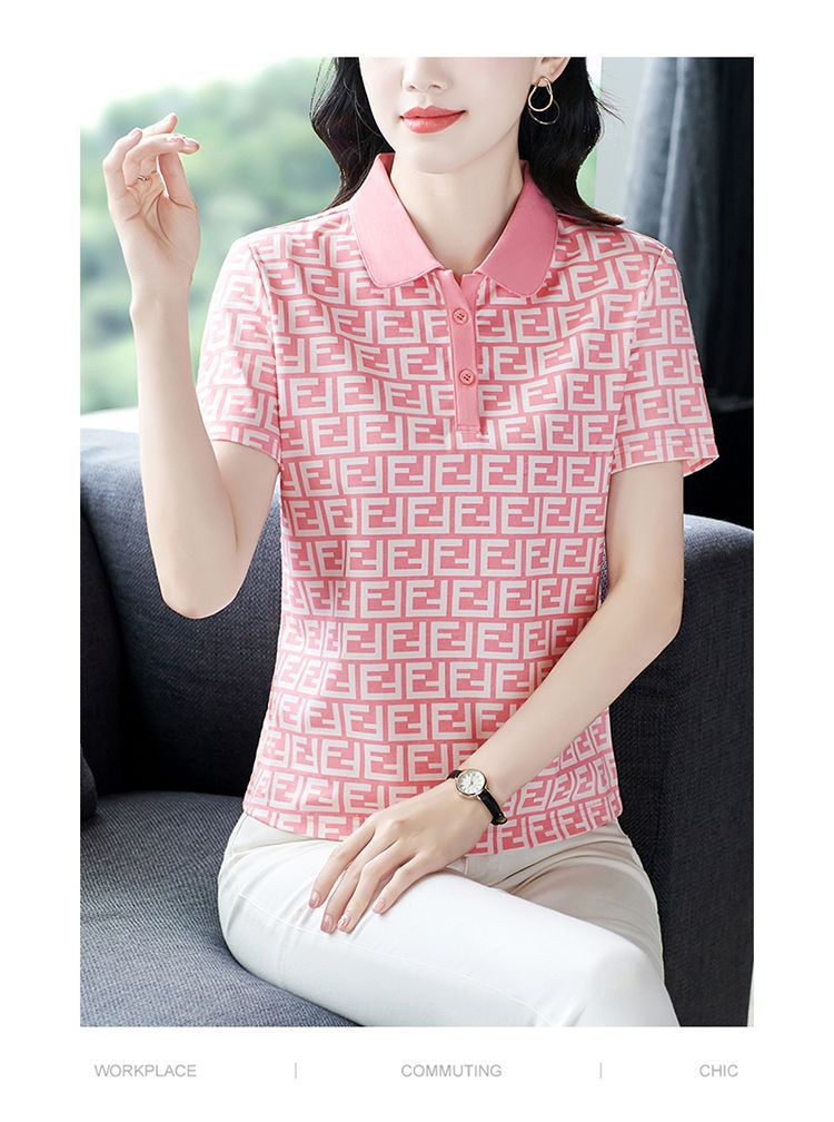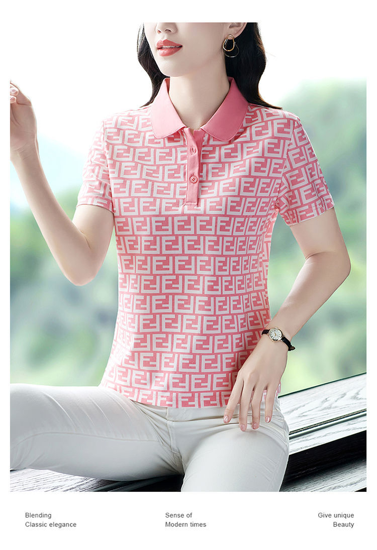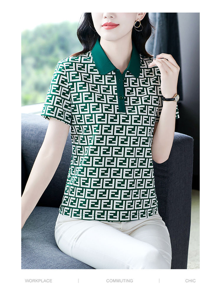 Летняя рубашка-поло 2024 года для женщин, новая свободная модель, слимминг, печатный топ