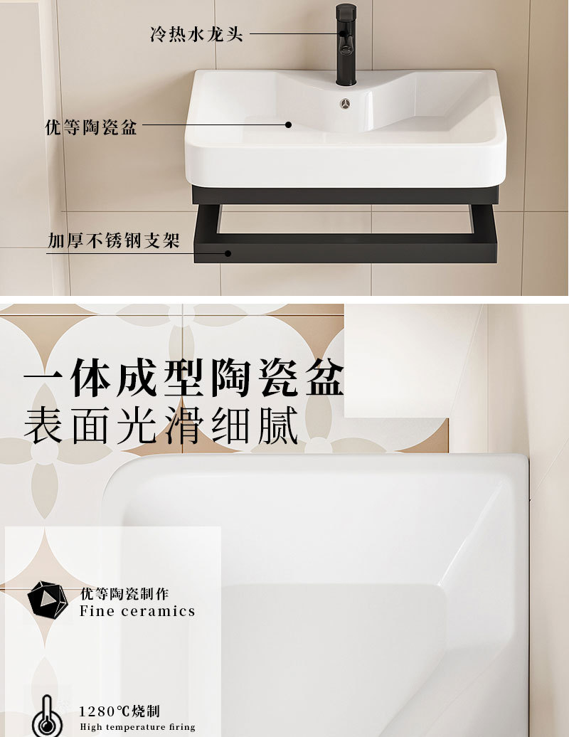 Настенная раковина, интегрированная керамическая раковина, для маленькой квартиры