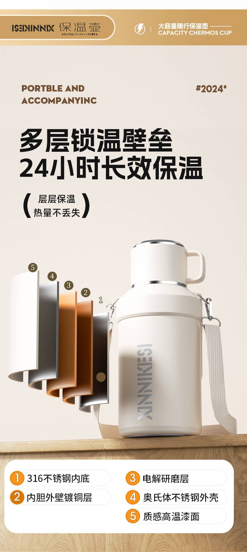Новый термос большой ёмкости из нержавеющей стали 316 для активного отдыха