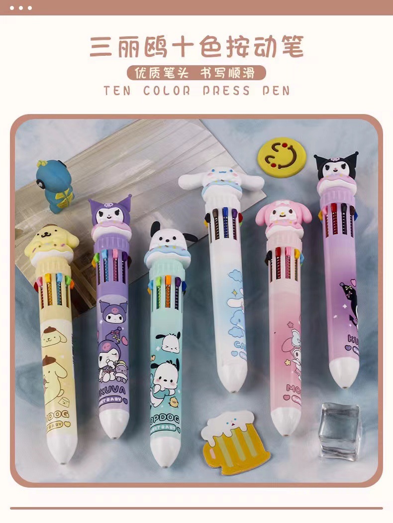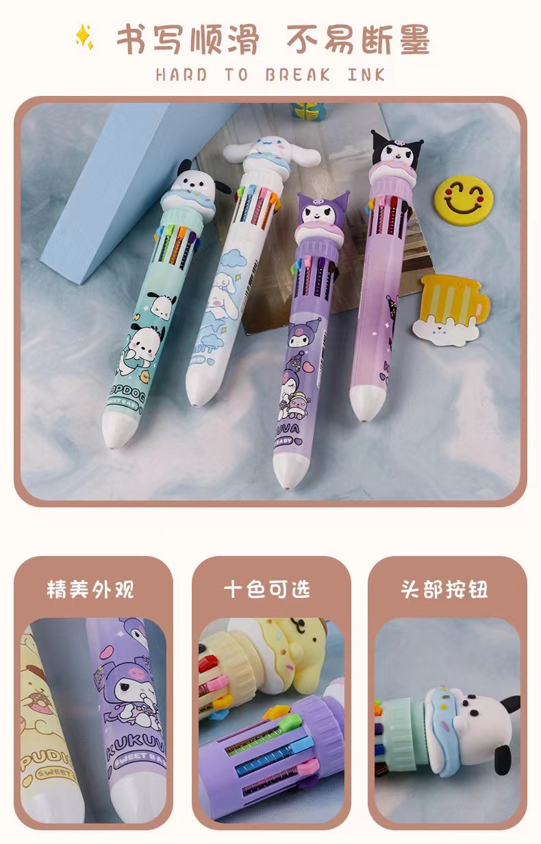 Мультимодульная ручка с десятью цветами, милый мультяшный персонаж, ручка для записи, высококачественная канцелярия оптом