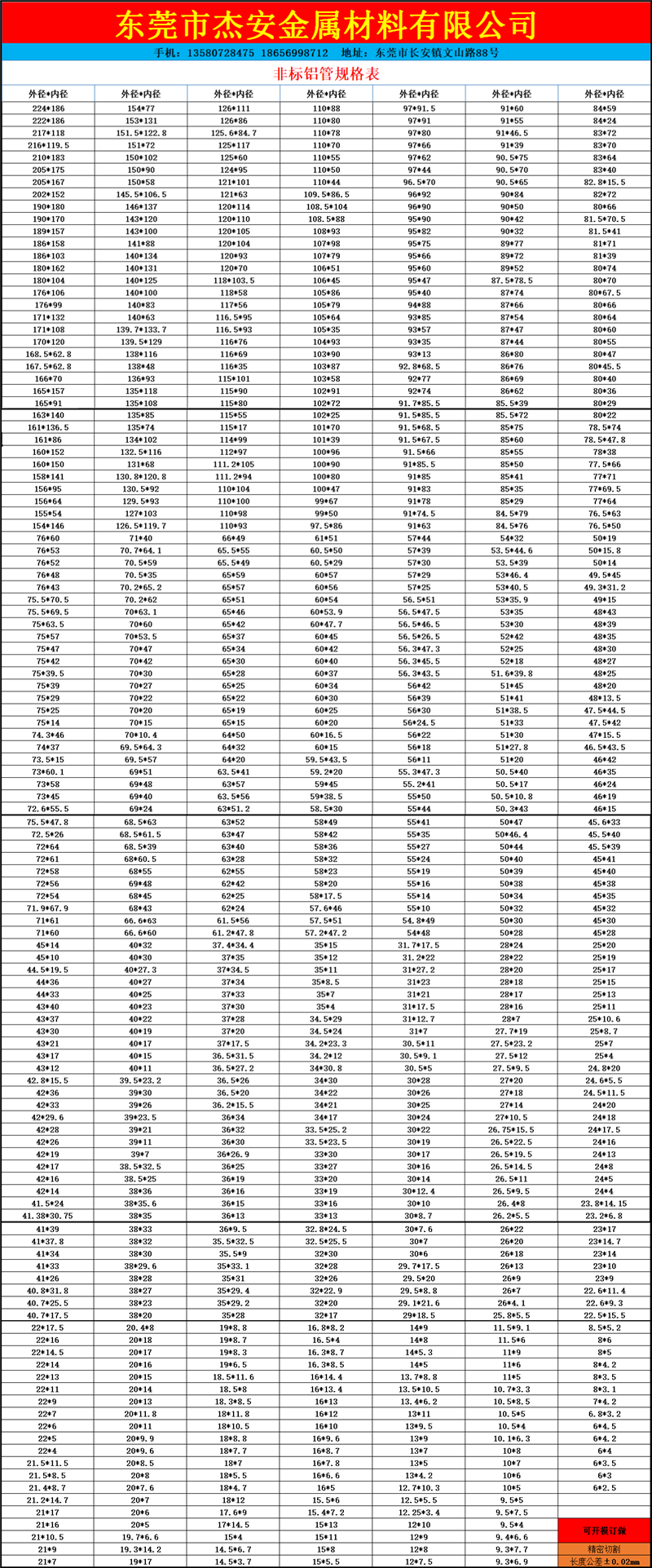 铝型材种类及其现货规格表: