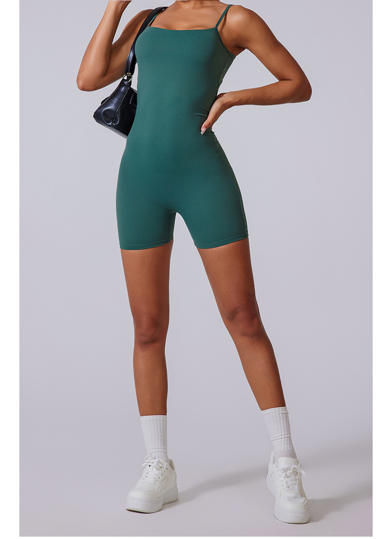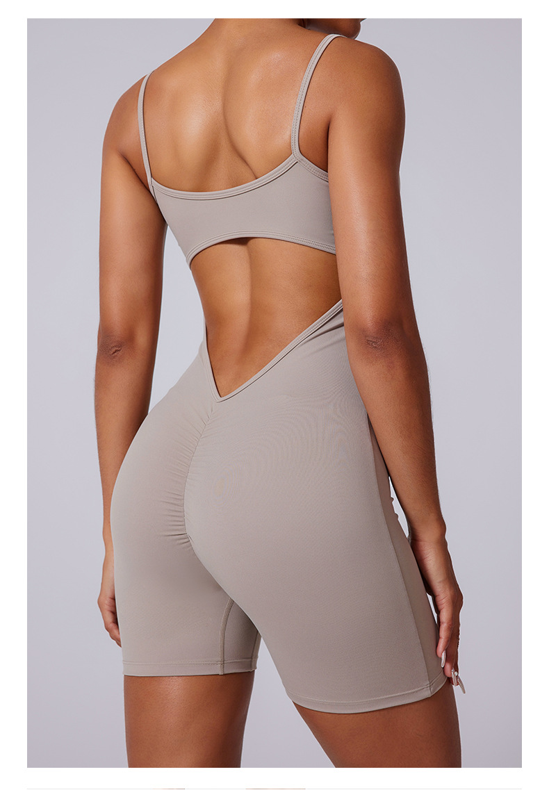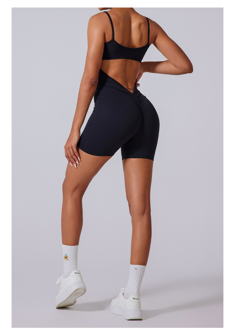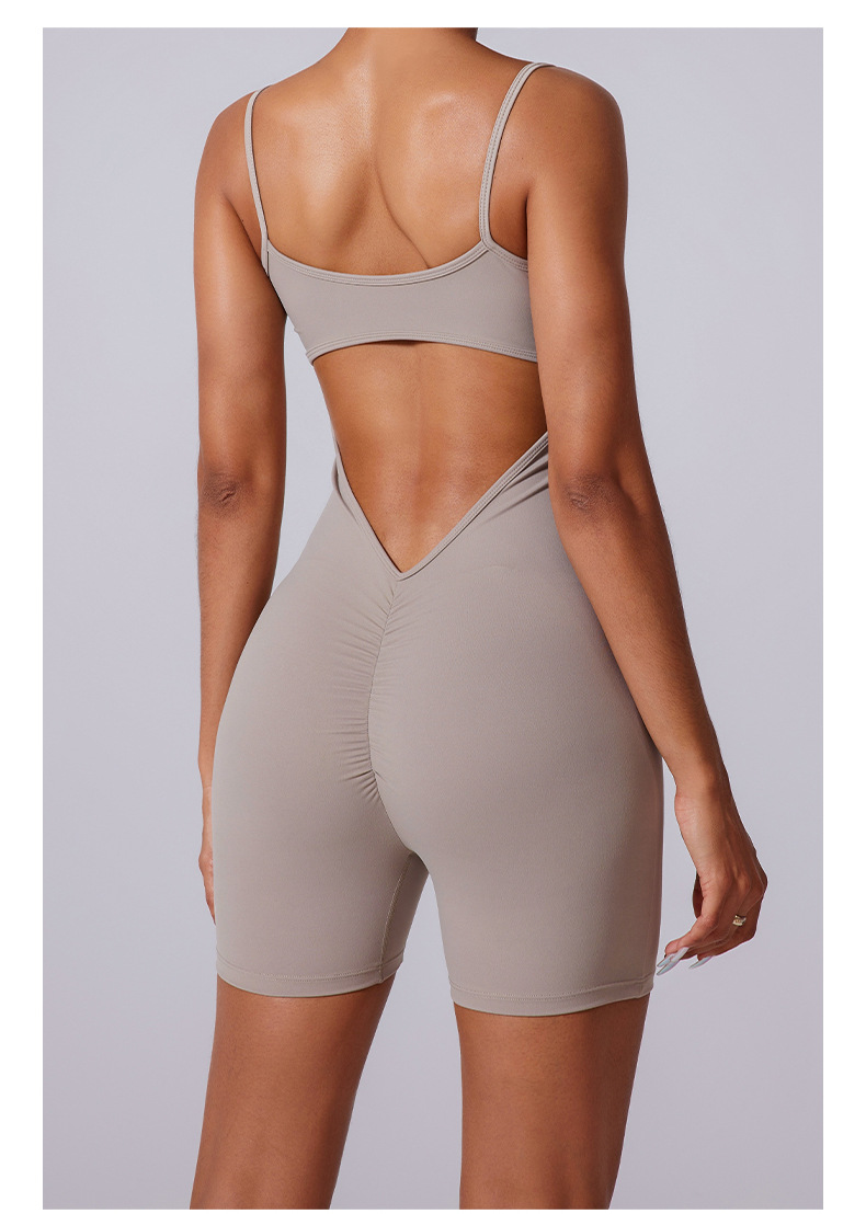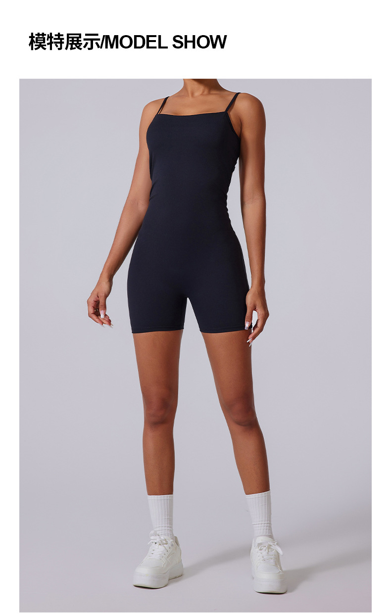 Кросс-бордерный комбинезон, тонкие плечевые лямки, шорты, вырез на спине, йога-комбинезон