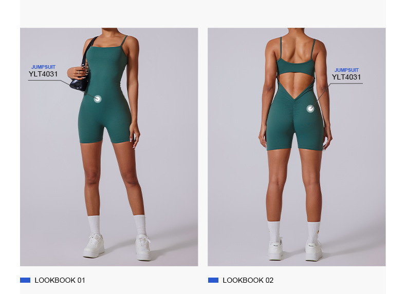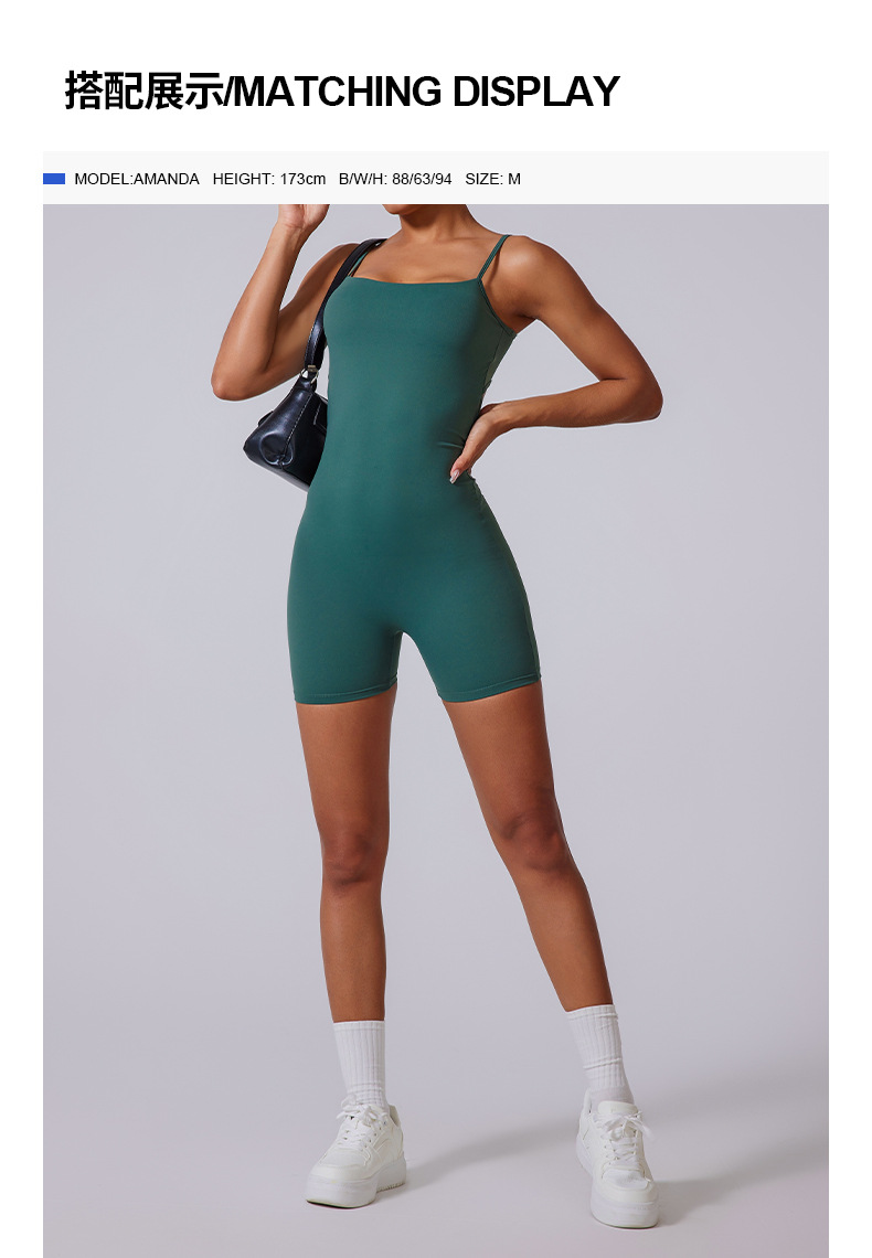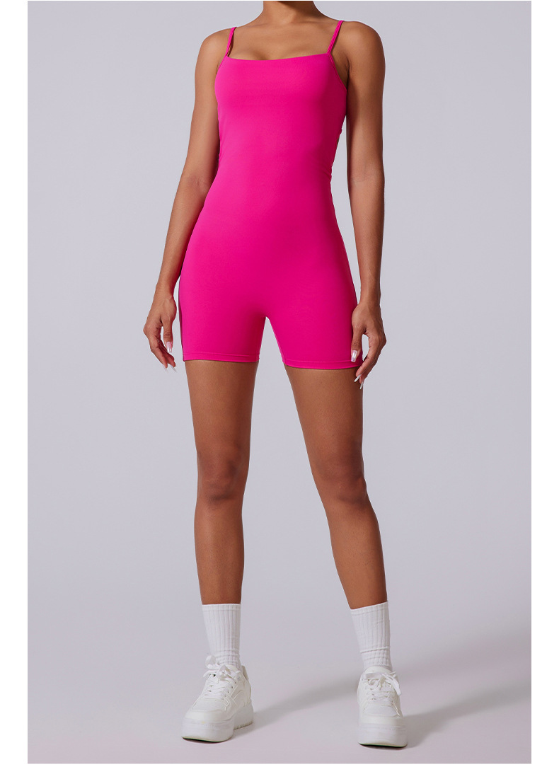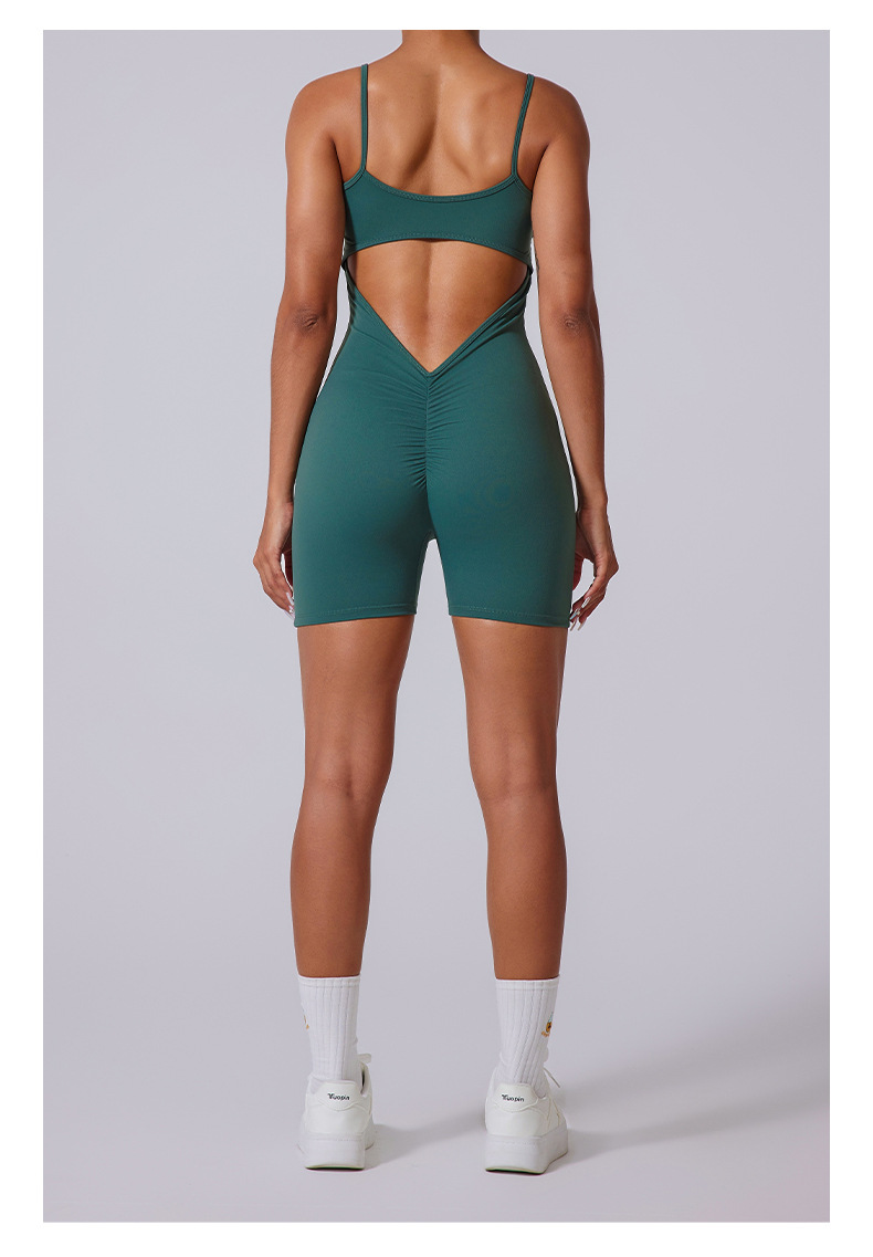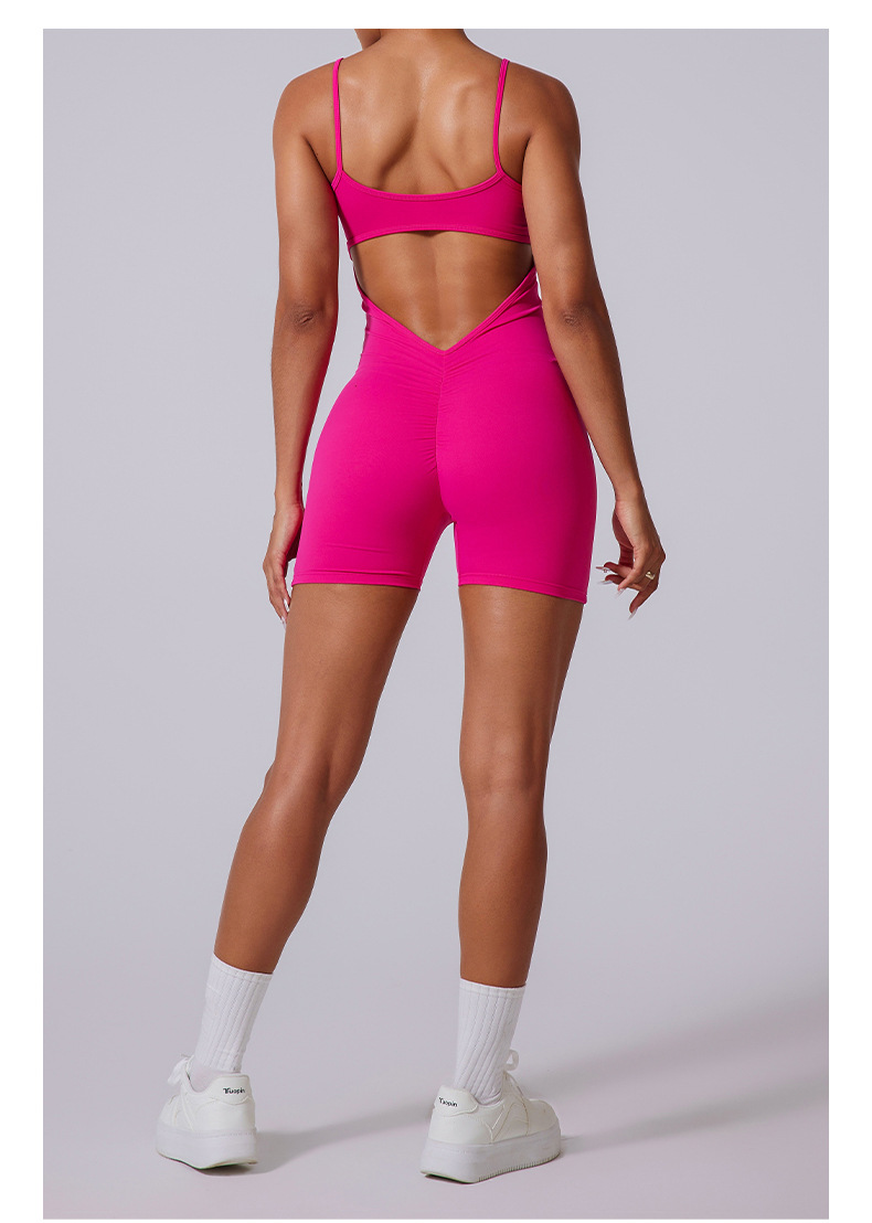 Кросс-бордерный комбинезон, тонкие плечевые лямки, шорты, вырез на спине, йога-комбинезон