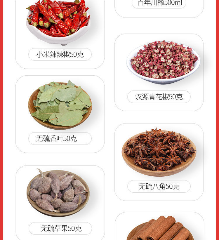 ![]() | Small bottle dormitory seasoning super complete 14-piece set [including thirteen spices] | ¥32.8 / ≈ 399 ₽ | 421 | 5851148913460 | |