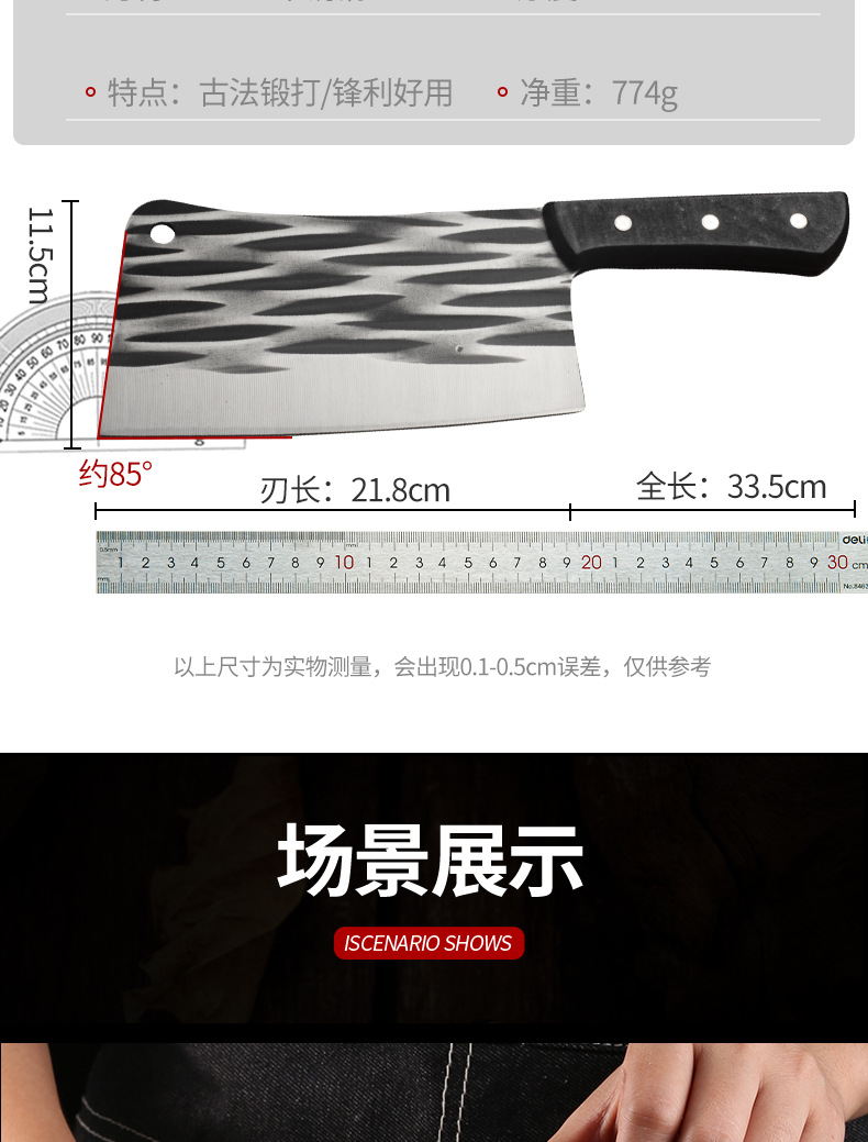 Нож для резки мяса и костей, кухонный нож, изготовленный вручную на заводе Янцзян