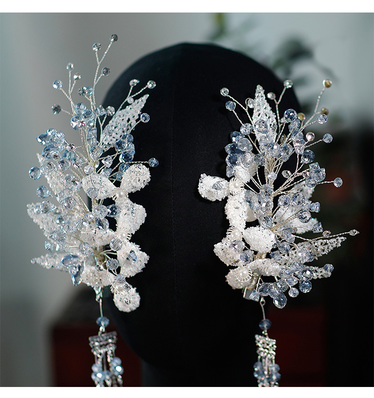 Модные высококачественные синие серо-золотые шелковые лепестковые серьги с кристаллами циркона и кисточками для невесты, аксессуары для свадебного платья
