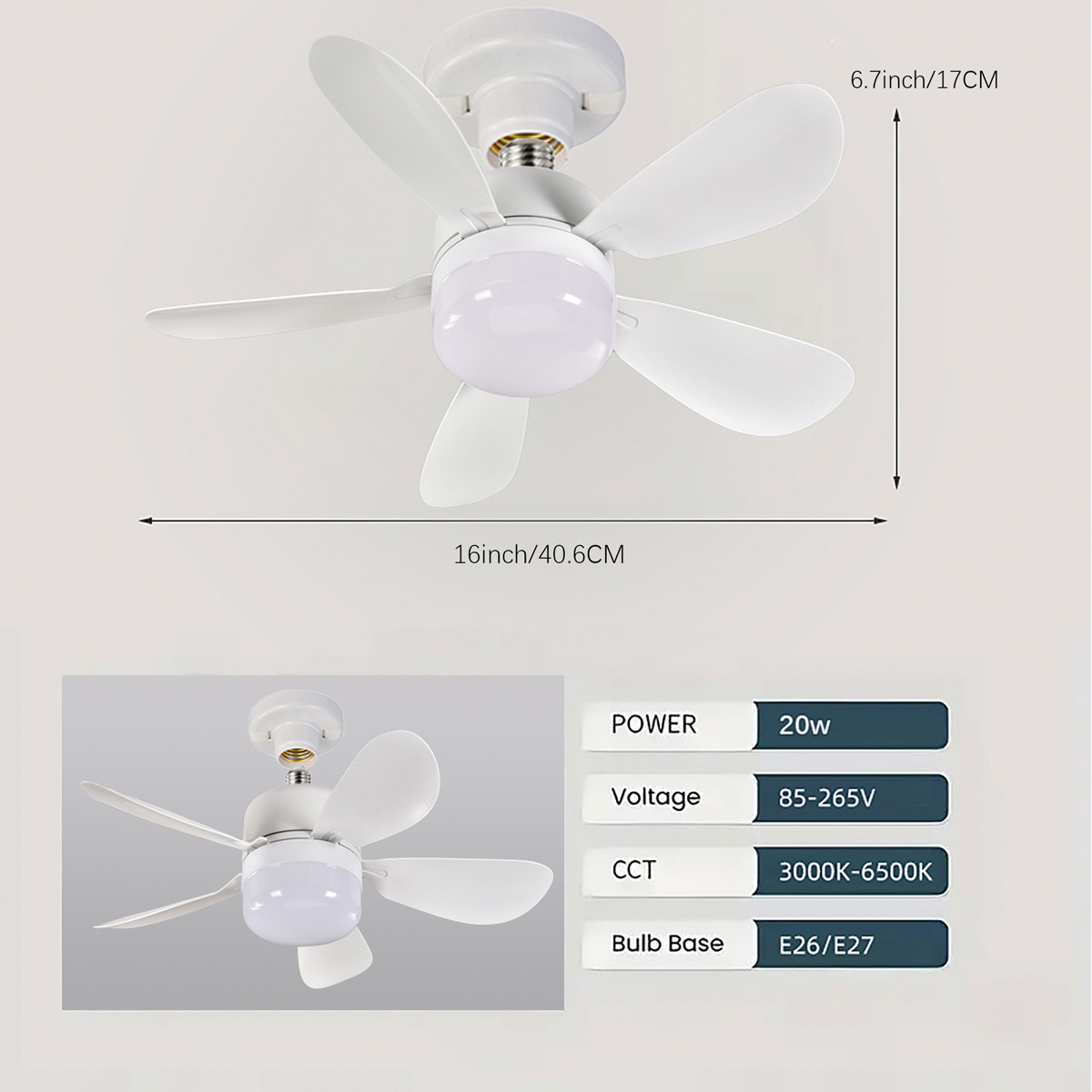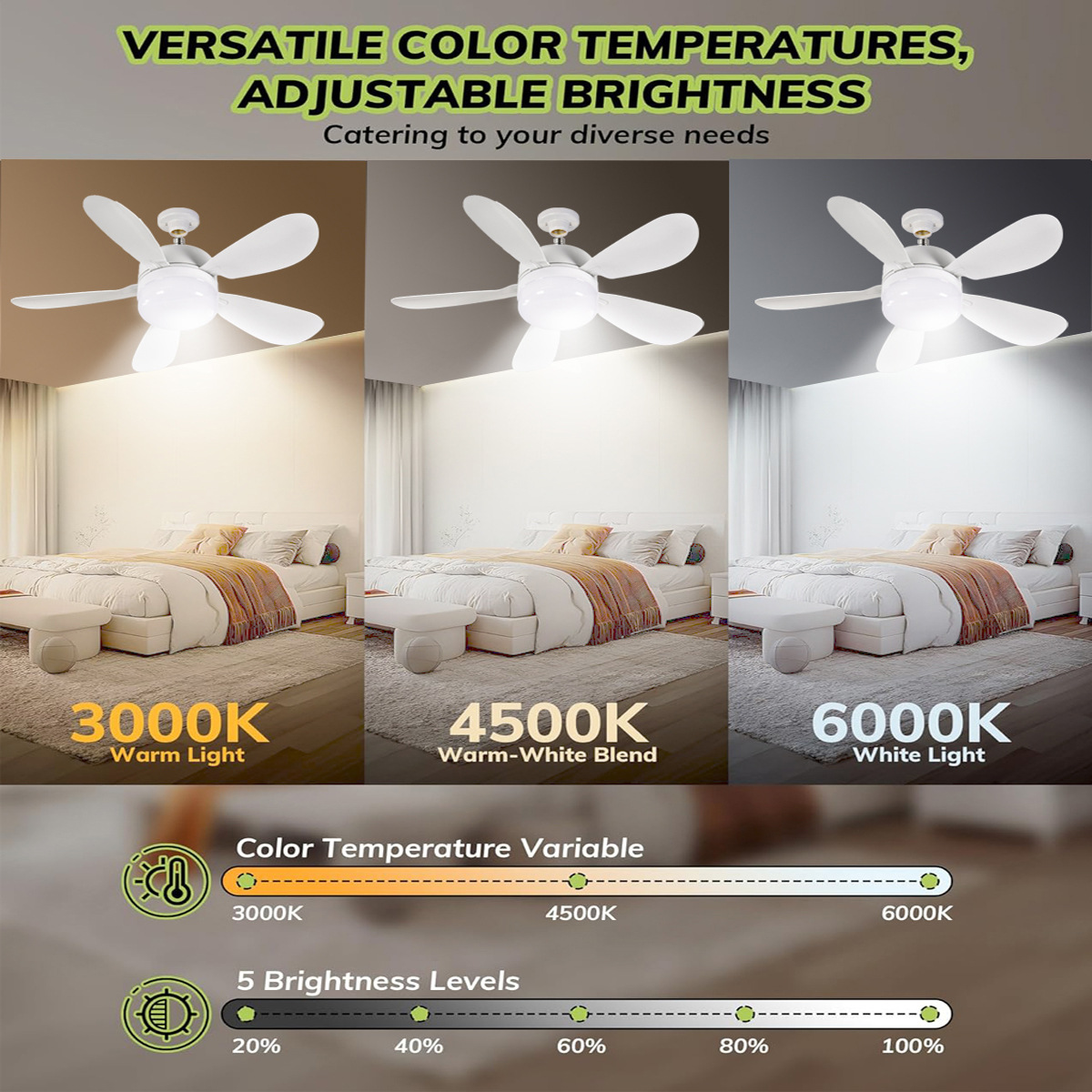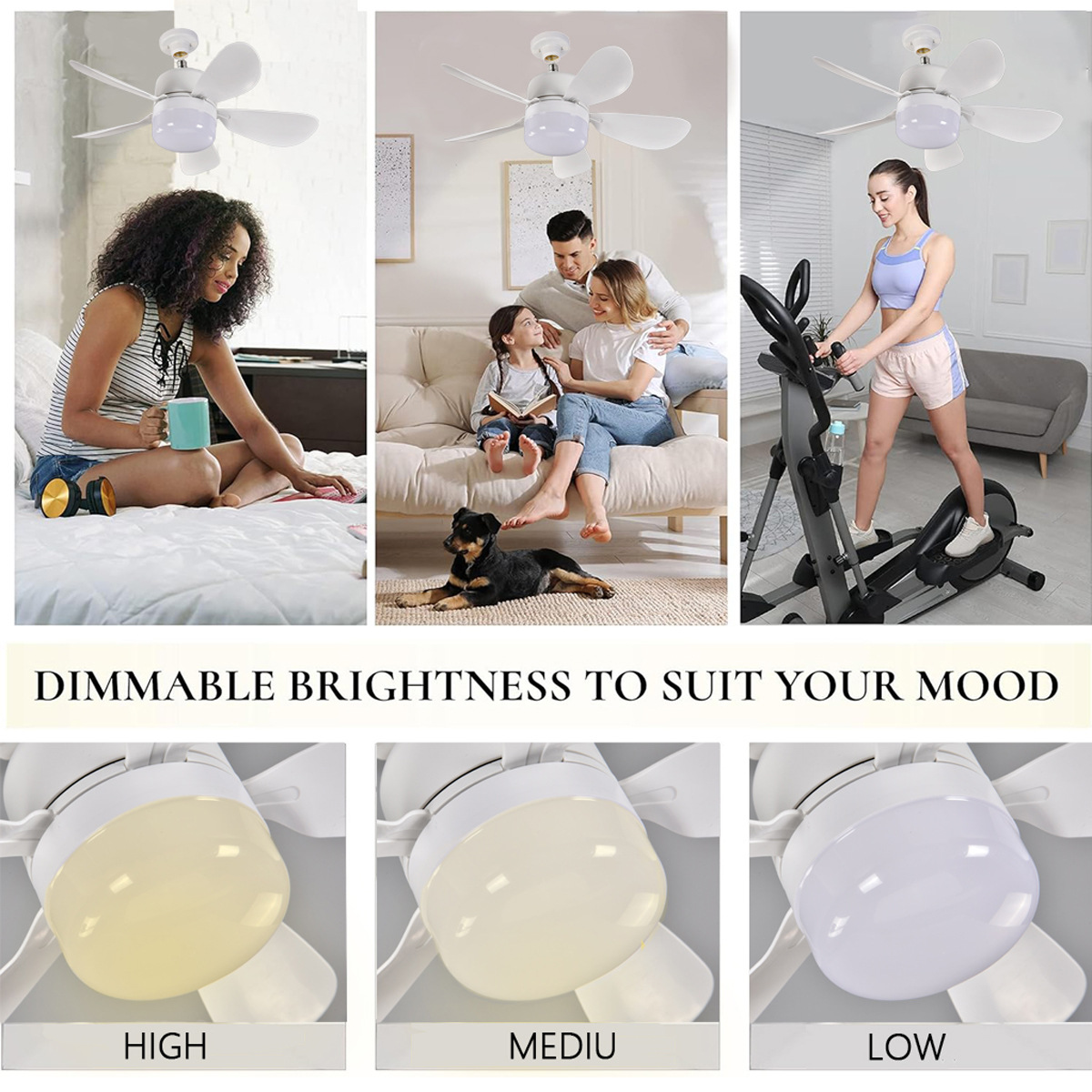Новая лампа с пятью лопастями, трехцветное диммирование, 4 скорости, маленький потолочный вентилятор для столовой, гаража, лампа-ветерок