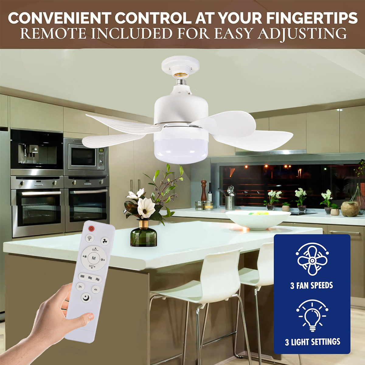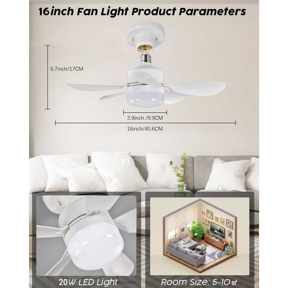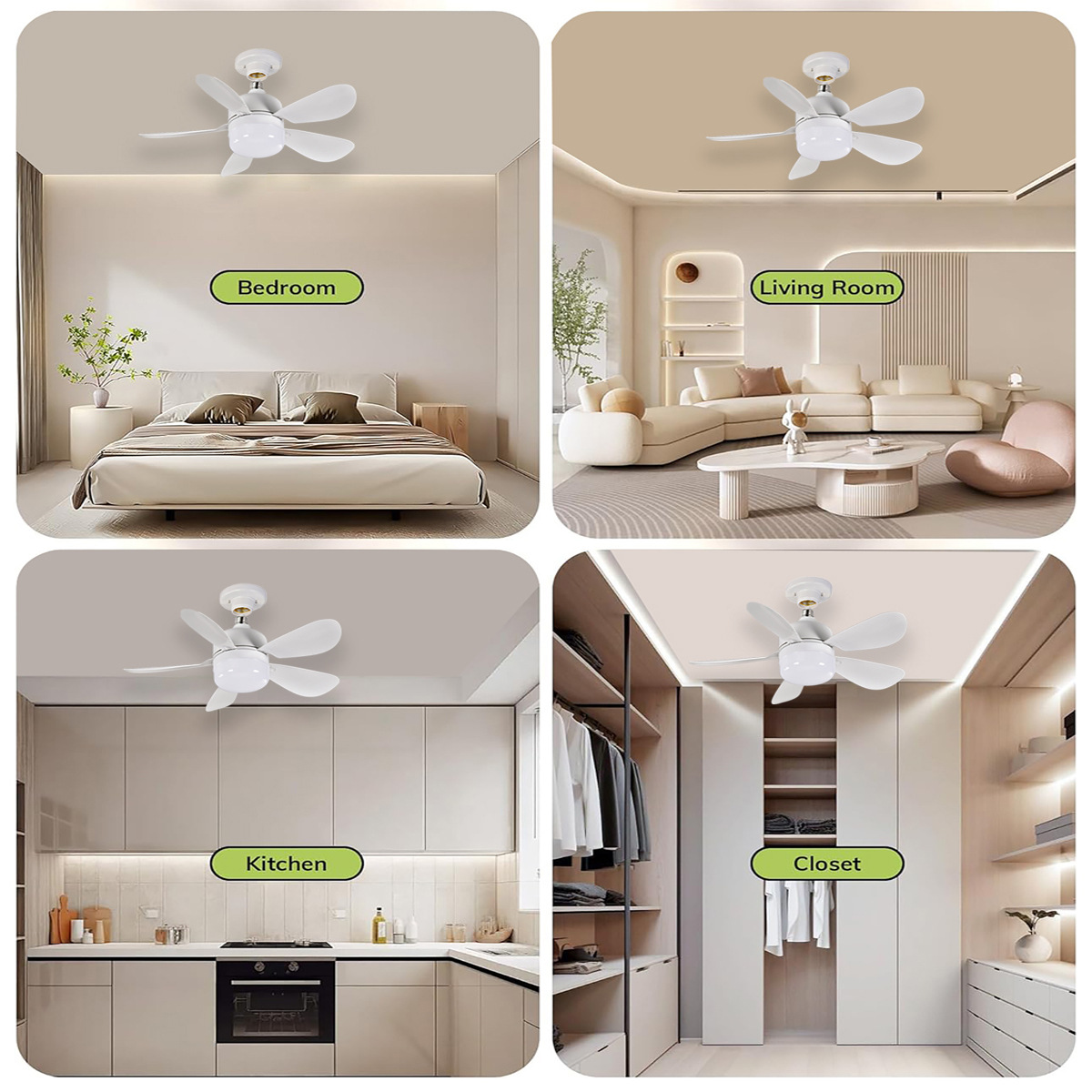 Новая лампа с пятью лопастями, трехцветное диммирование, 4 скорости, маленький потолочный вентилятор для столовой, гаража, лампа-ветерок