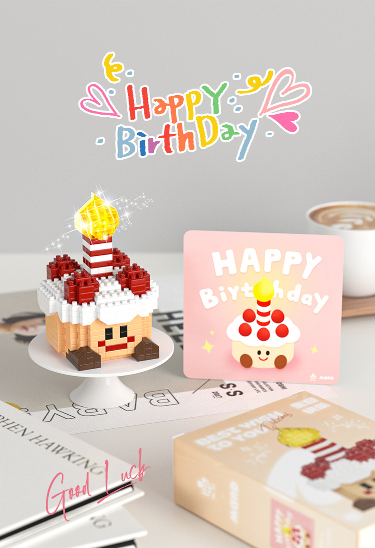 2024Mard Подарок на день рождения Светящийся торт Модные новинки Мелкие частицы строительных блоков Игрушка сборки для мальчиков и девочек