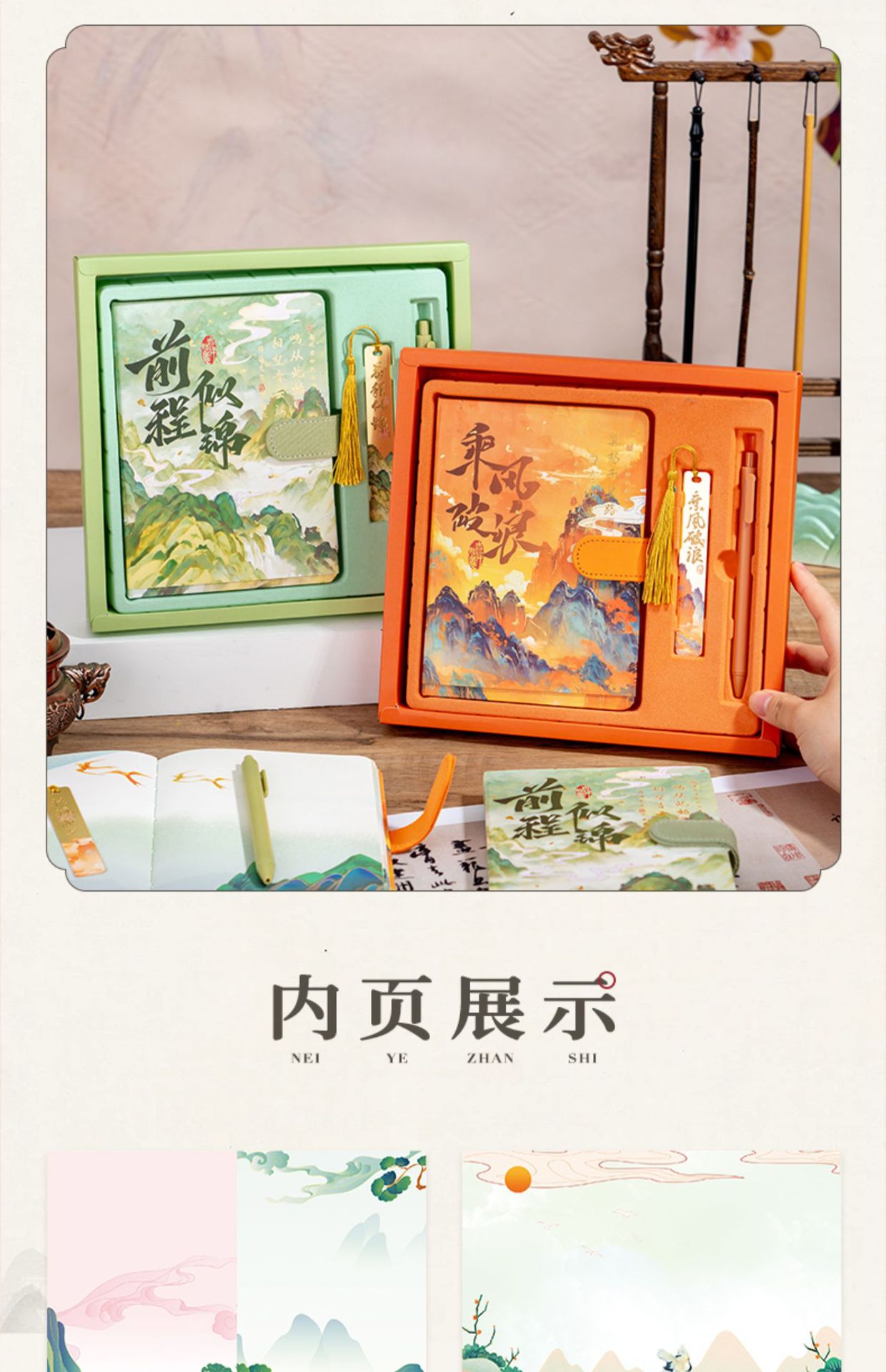 Оранжевая хорошая записная книжка Подарочная коробка Канцтовары для учеников начальной школы Сопровождающий подарок Подарочная книга ручного учета в китайском стиле