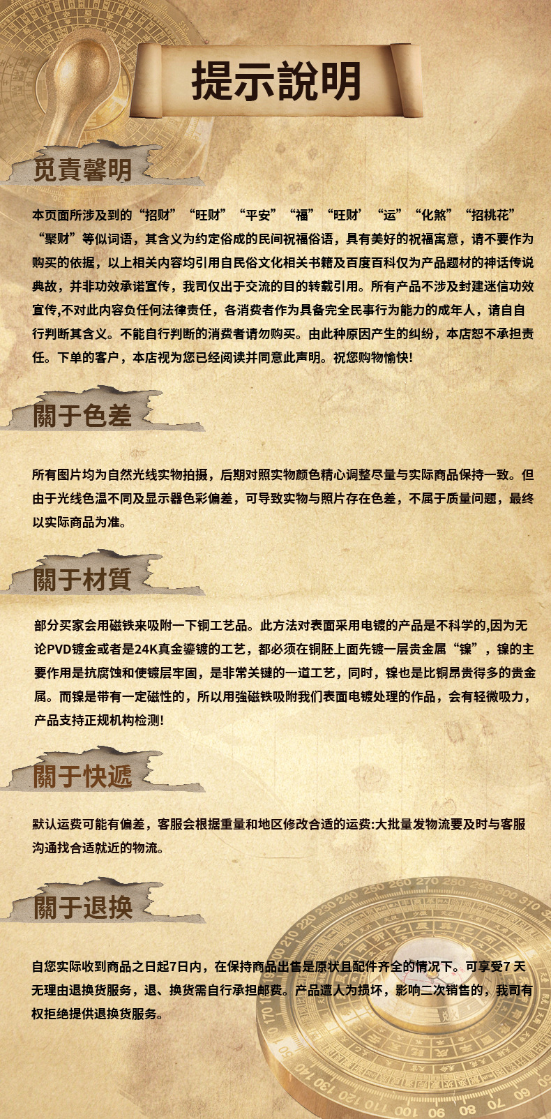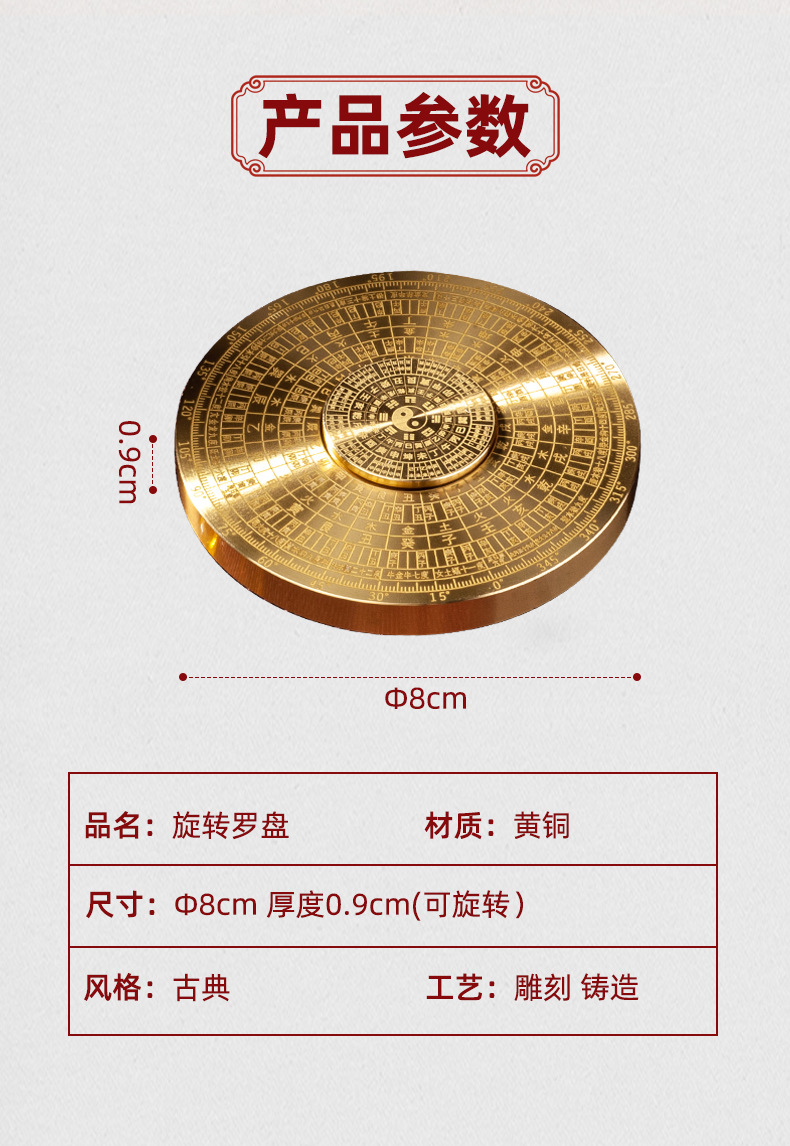 ![]() | 8cm brass bagua compass | ¥15.0 / ≈ 182 ₽ | 9992 | 5802940784023 |