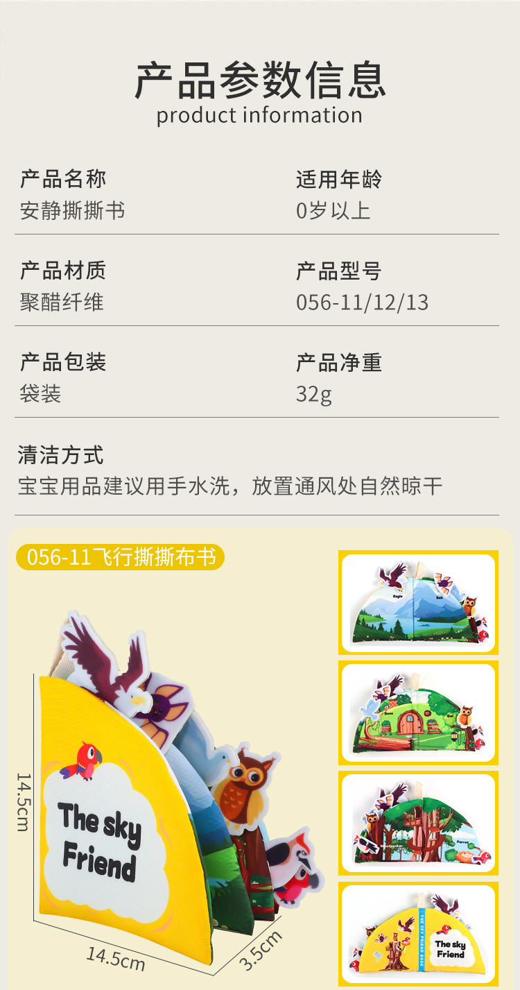 ![]() | Flying animals 4-page 8-sided tearable cloth book [with six animals] 48g | ¥7.0 / ≈ 85 ₽ | 88887 | 6093485871475 | |
