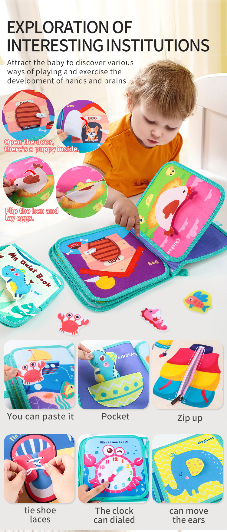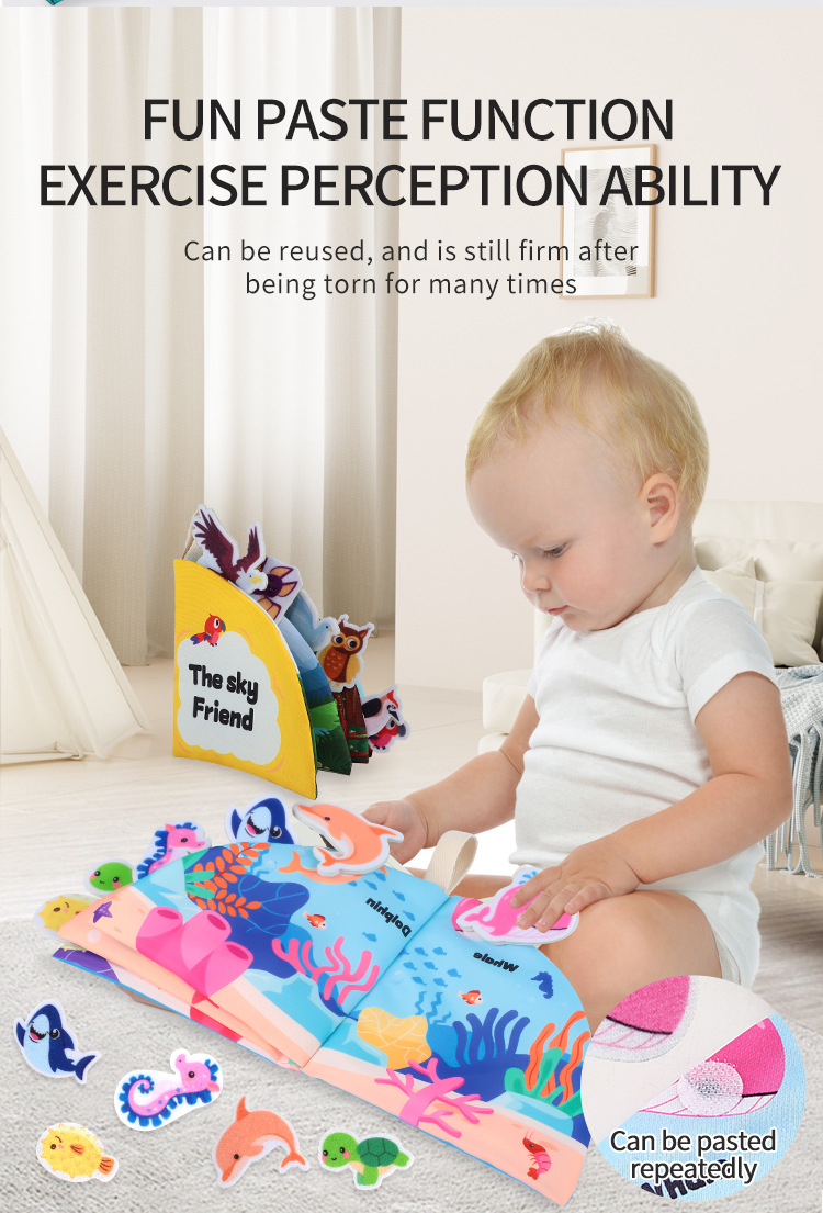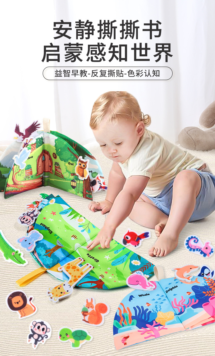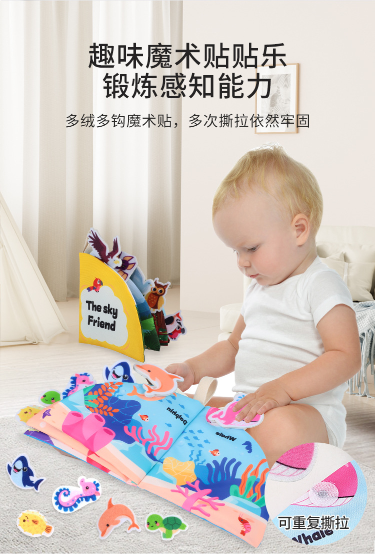 Книга из ткани с липучкой, можно жевать, развивающая игрушка для детей от 0 до 3 лет