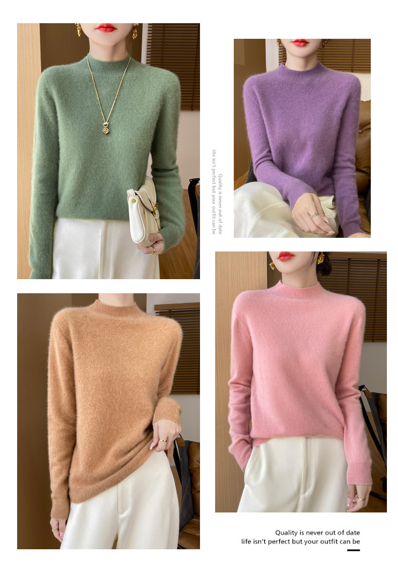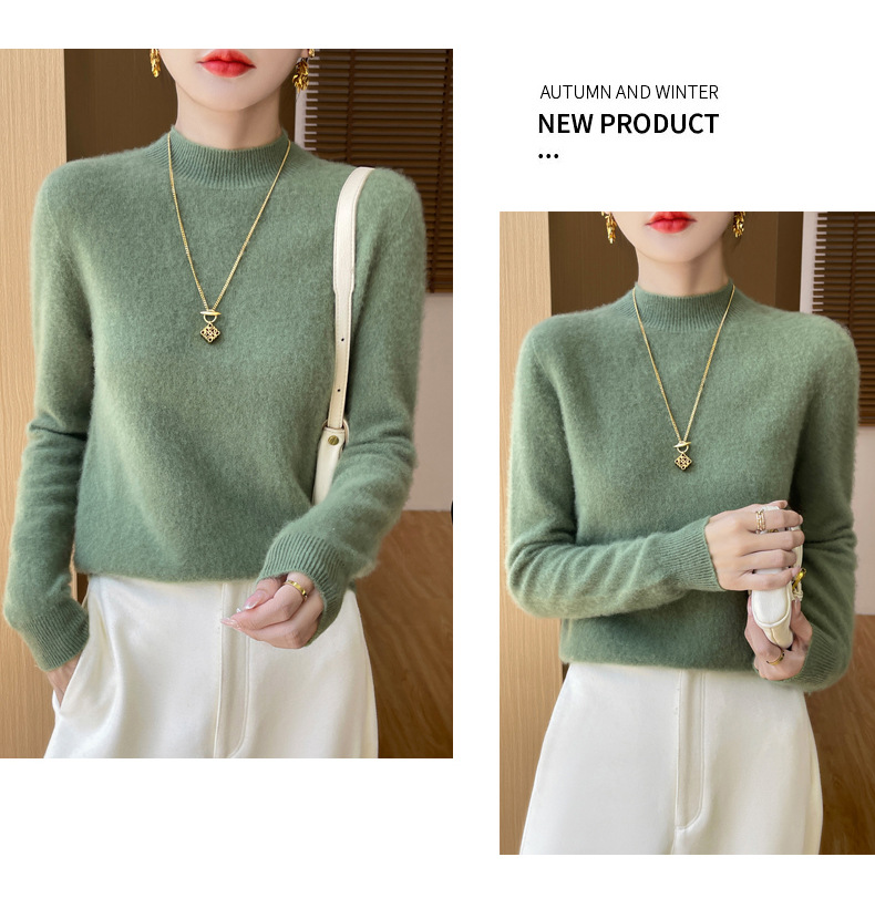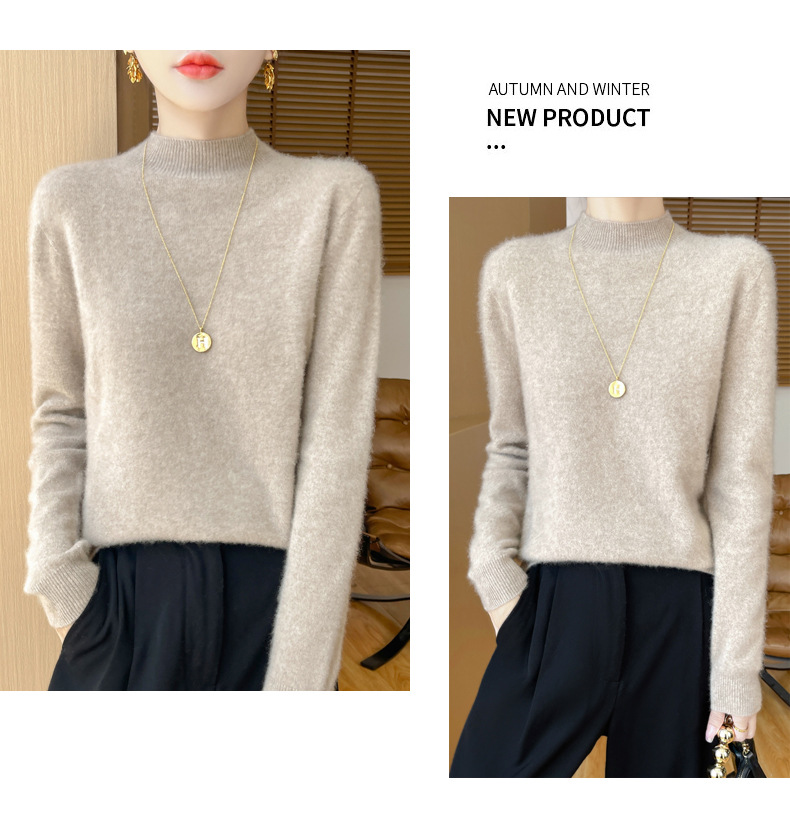 Готовая к продаже оптовая женская полупуловер из 100% шерсти без швов, приятная к коже, осень-зима, в наличии