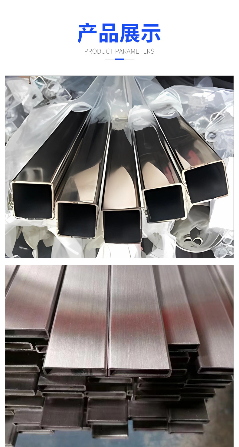 Квадратная труба из нержавеющей стали с матовым зеркальным покрытием 304, прямоугольная труба 201, труба большого диаметра, сварная, утолщенная полая труба