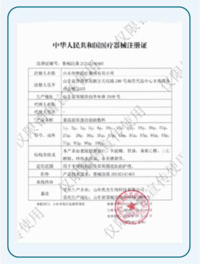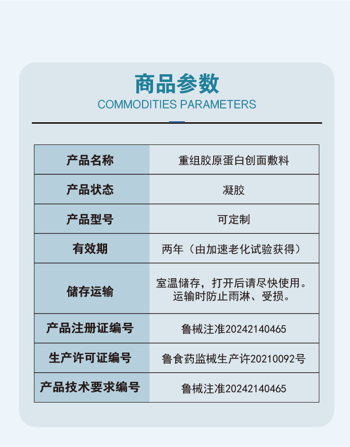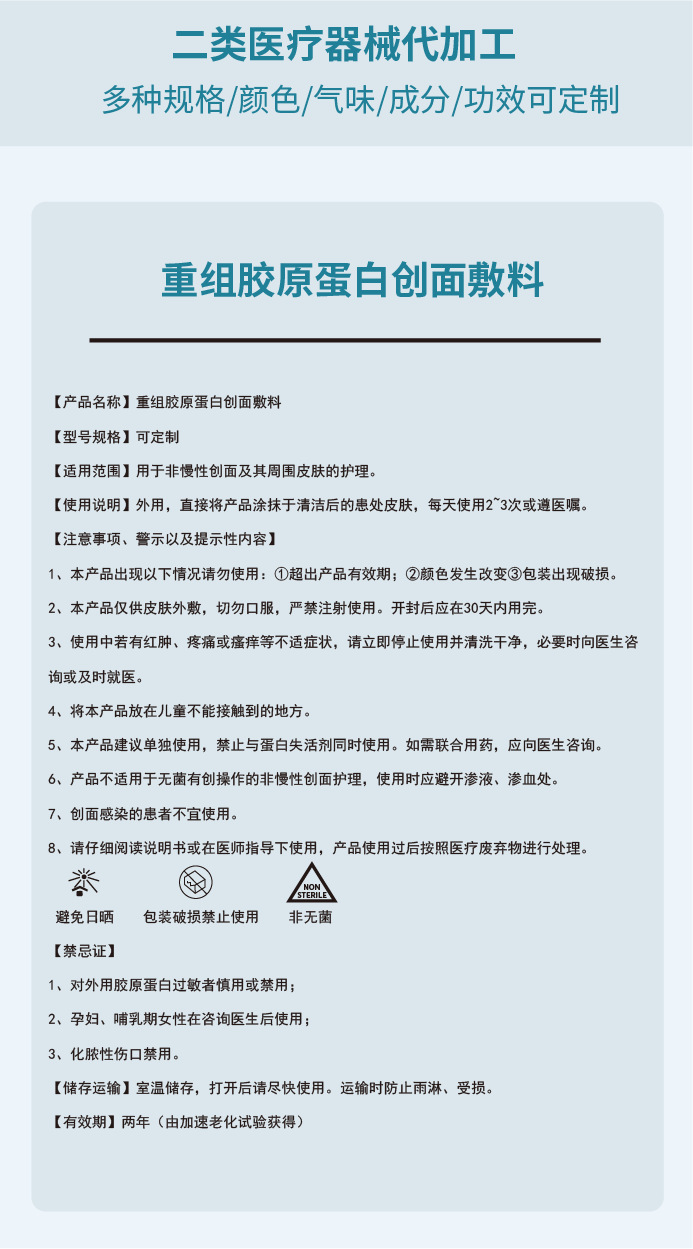 Индивидуальная рекомбинантная коллагеновая повязка для ухода за раной Категория 2 Медицинское оборудование Медицинская арт-повязка