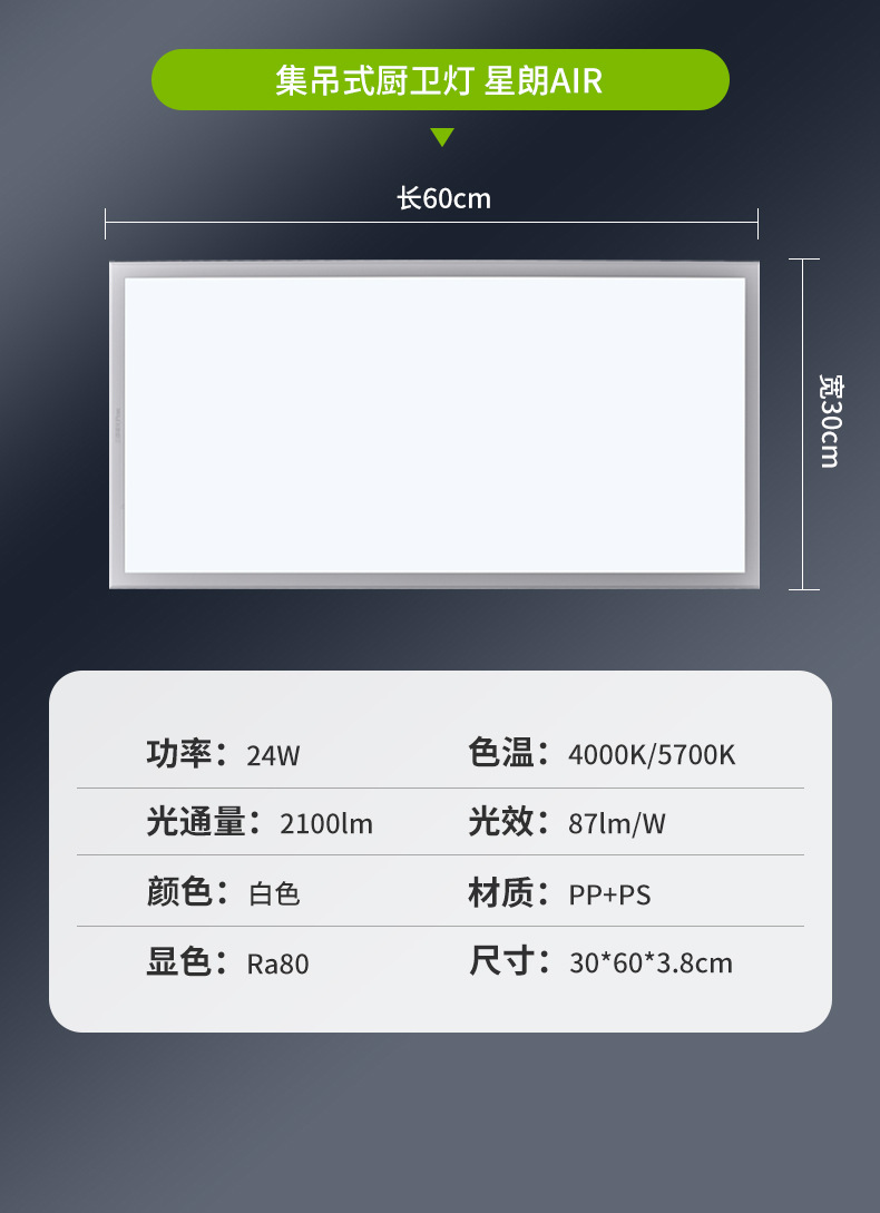 ![]() | [high brightness and durability] xinglang 3rd generation 24w white light|Aluminum white frame|300*600 | ¥78.5 / ≈ 955 ₽ | 0 | 5830057125117 | |