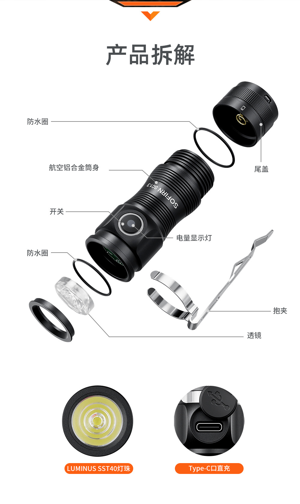 Фонарик sofirn SC13 мощный мини портативный для outdoor, велосипедный, с клипсой на шляпу, магнитный, аварийный