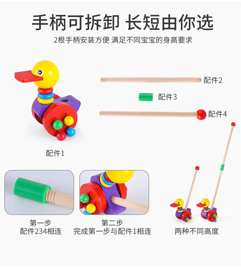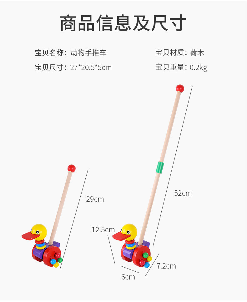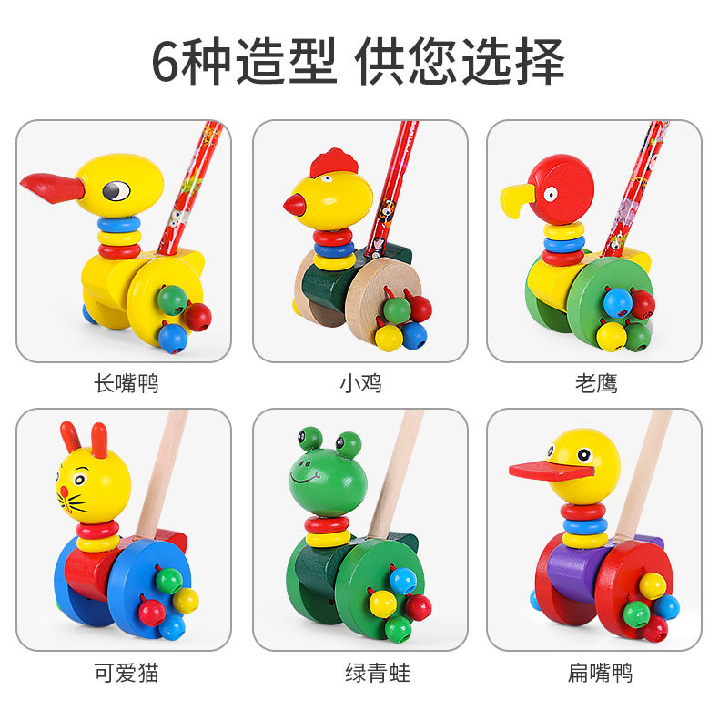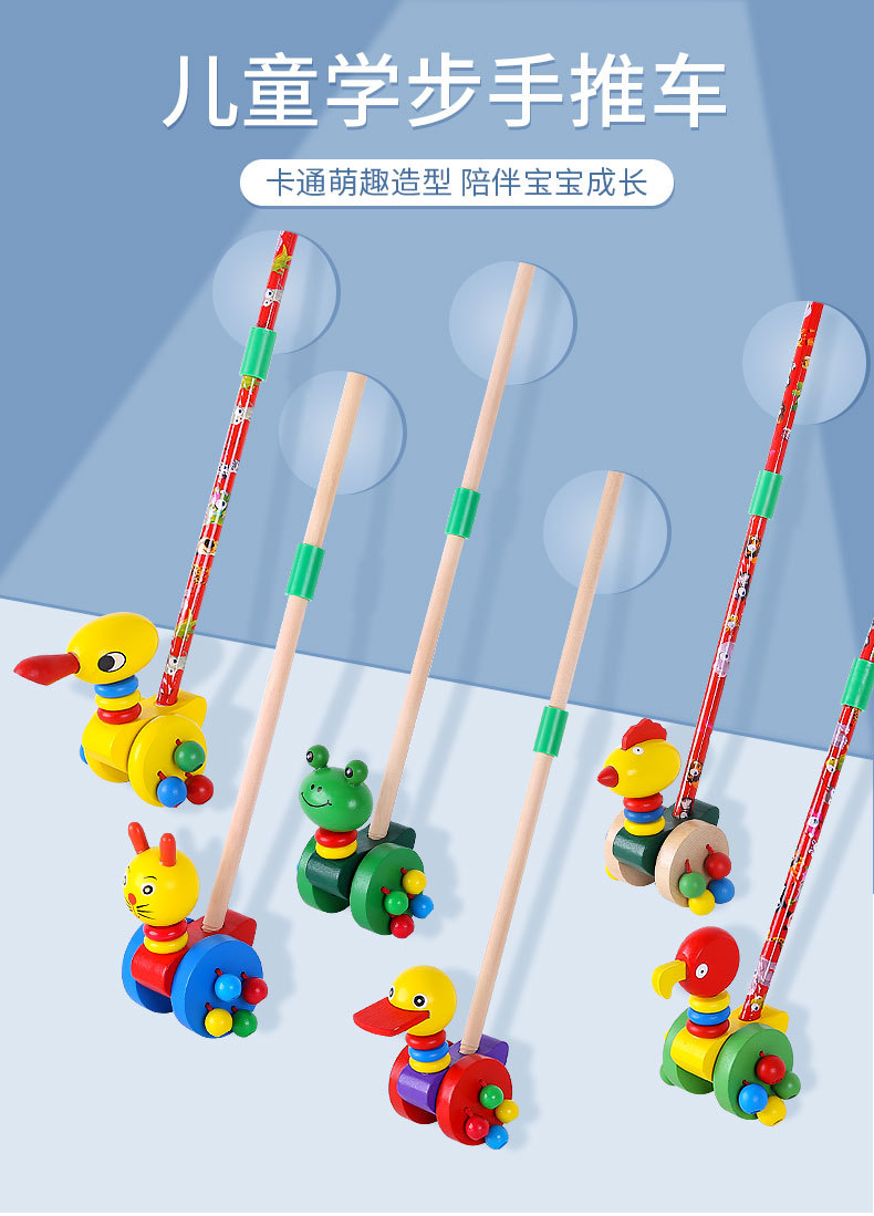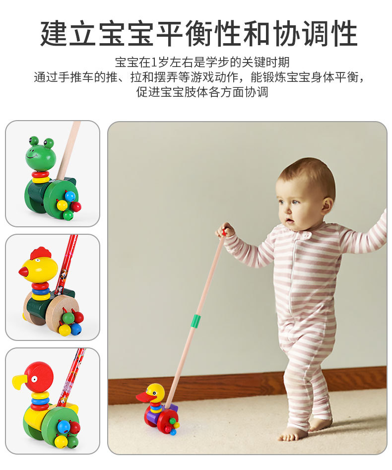 Деревянная коляска с мультяшными животными для детей 0-3 лет