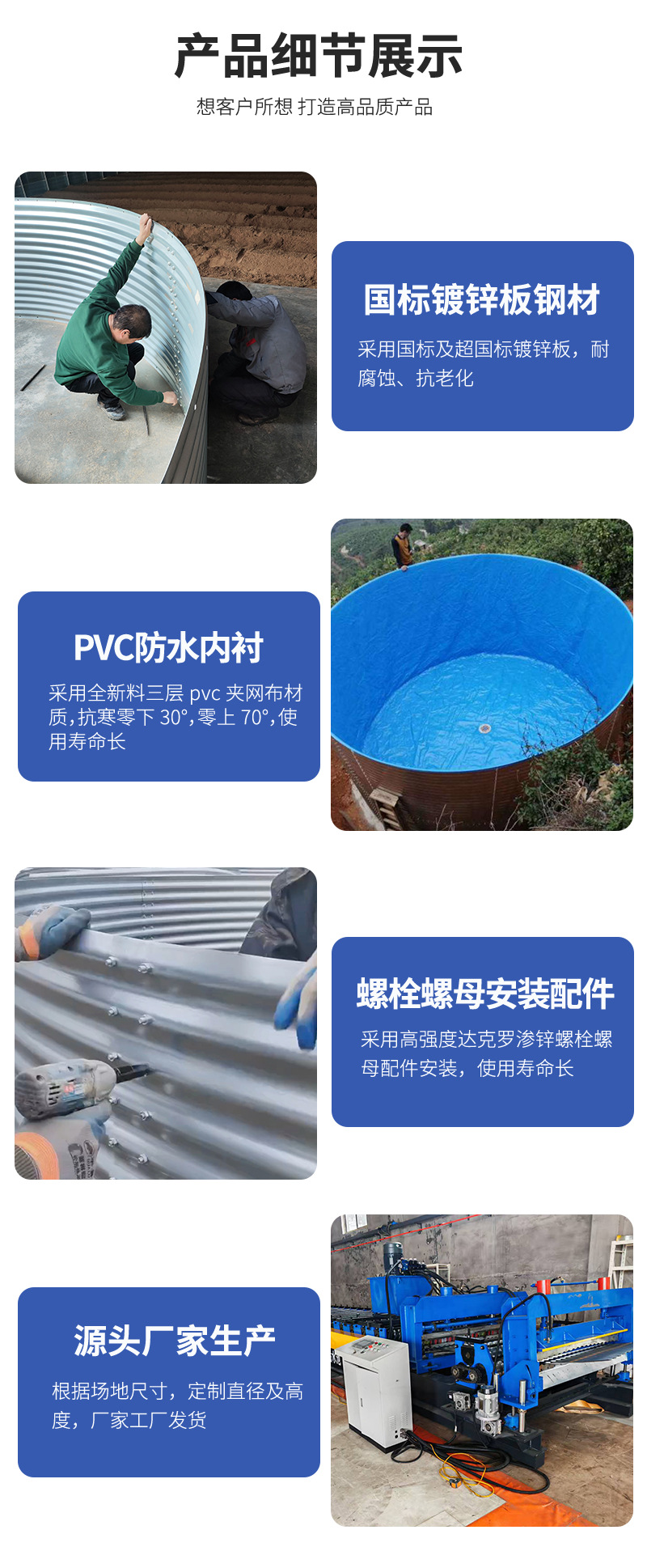 镀锌板水池装配式蓄水池高标准农田水肥一体果园组装灌溉储水罐