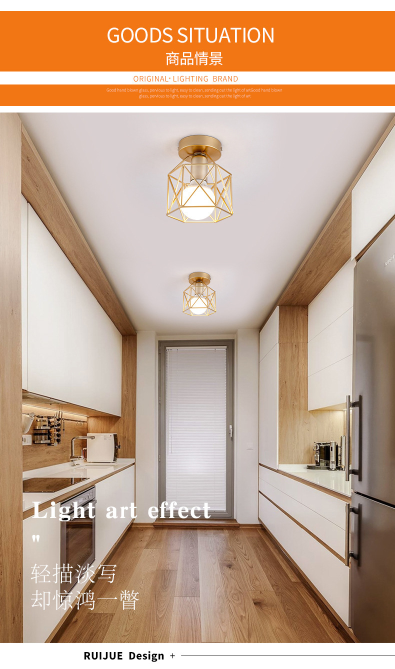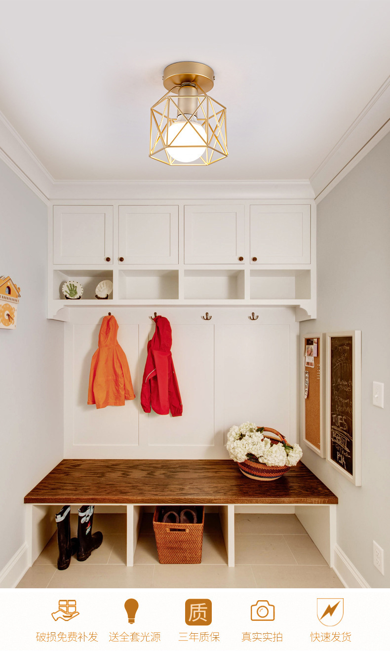 Скандинавская железная потолочная лампа, светильник для коридора, простой современный светильник для прихожей и балкона