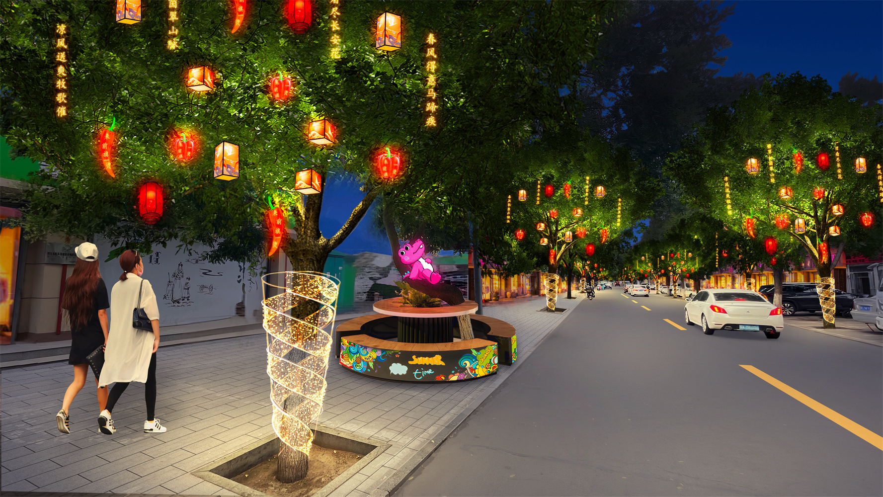 Город Чифэн, провинция Внутренняя Монголия, XXX коммерческая улица, дизайн фестивального освещения, квалификация дизайна освещения, ландшафтное освещение