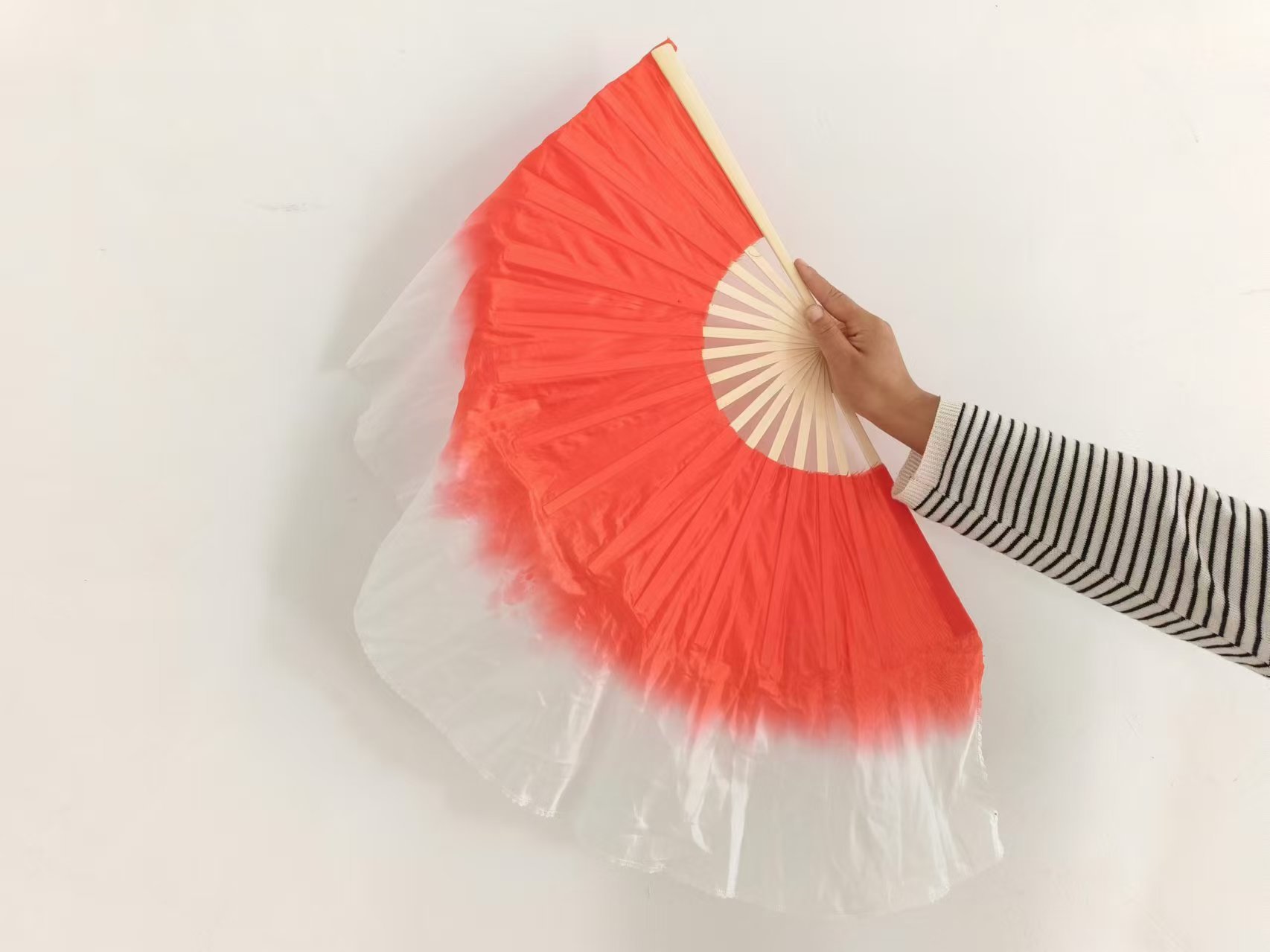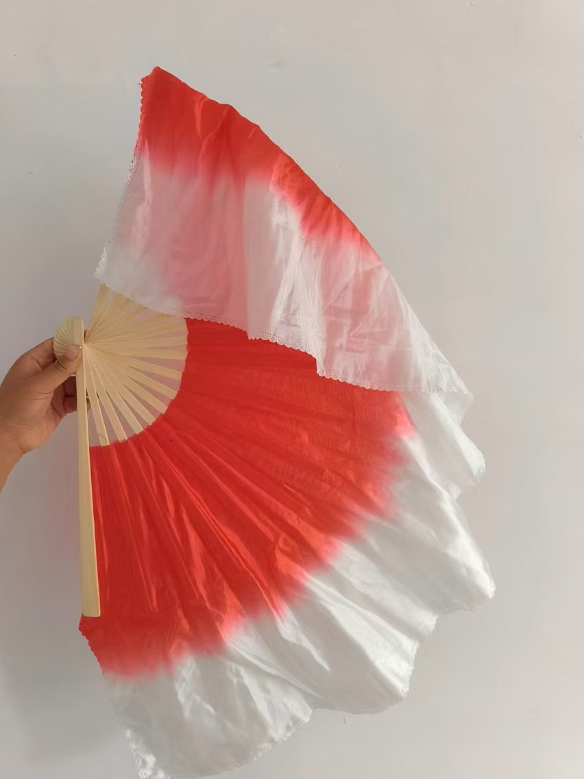Веер Ванцзян, танцевальный веер, шелковый, большой двусторонний темно-красный, градиентный, Янко, квадратный танец