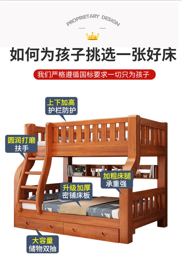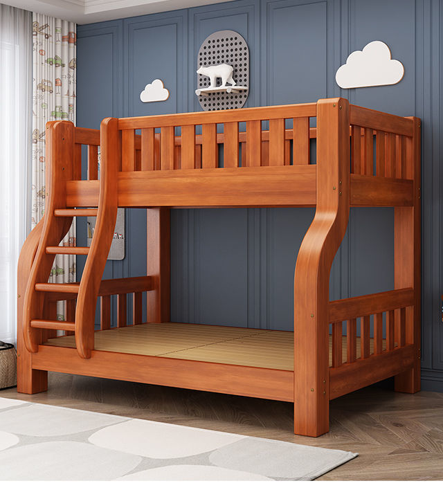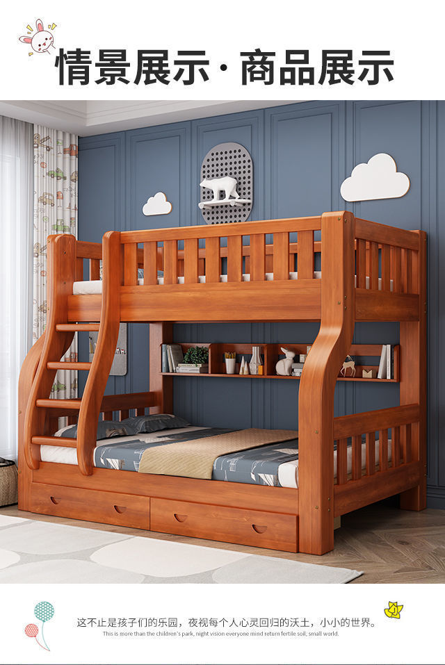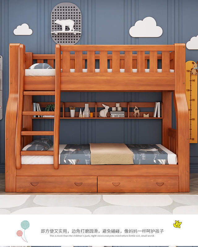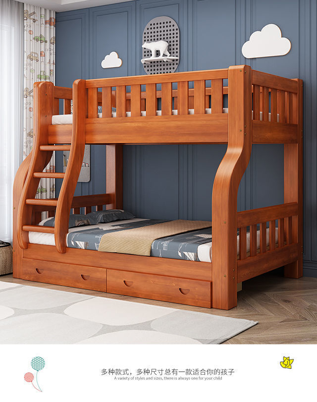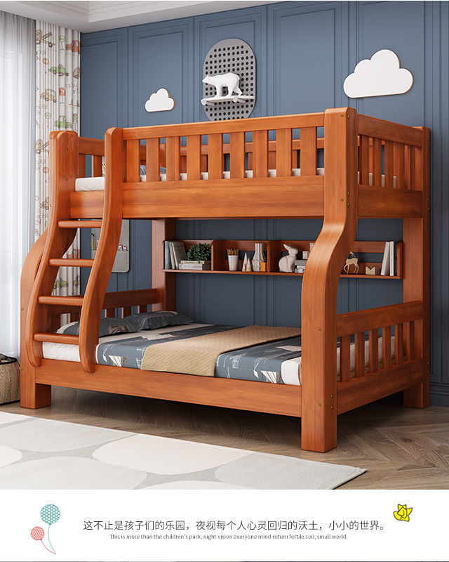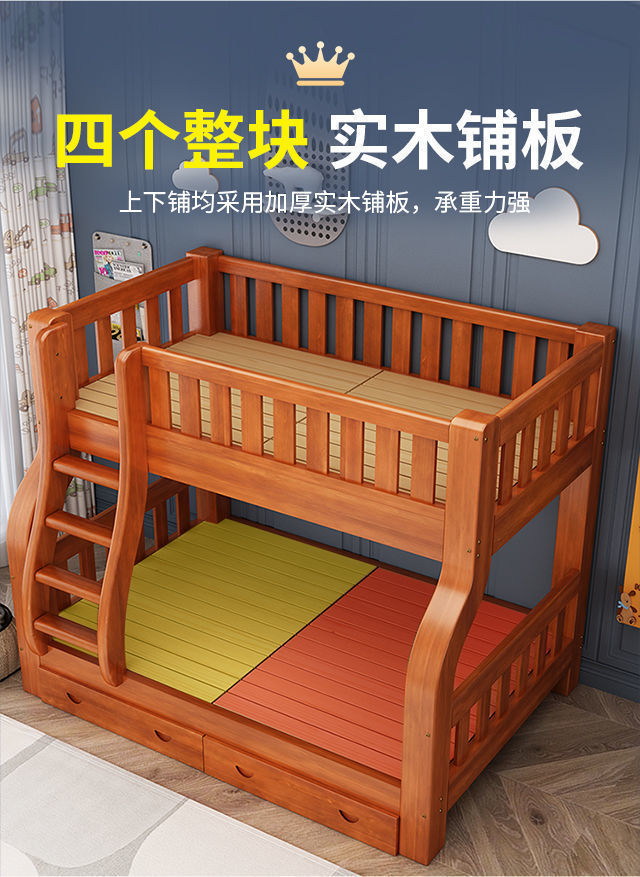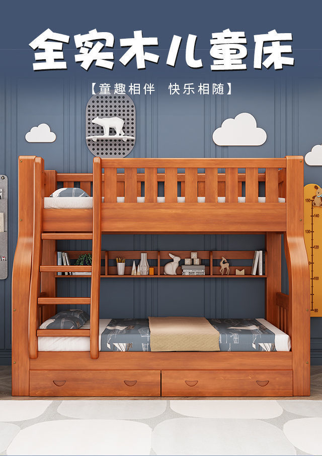 Детская двухъярусная кровать, полная из массива дерева, двухуровневая, для маленькой квартиры, материнская кровать, деревянная кровать