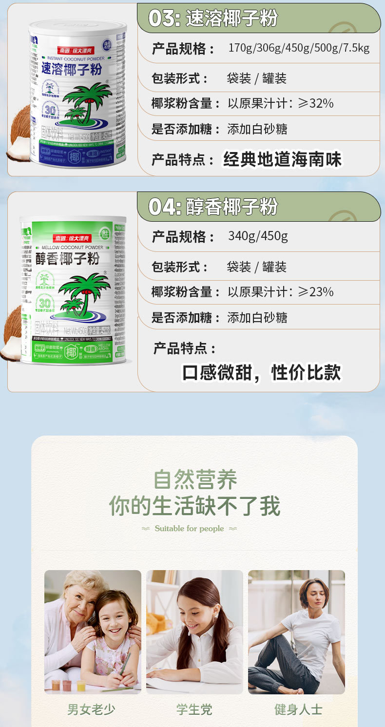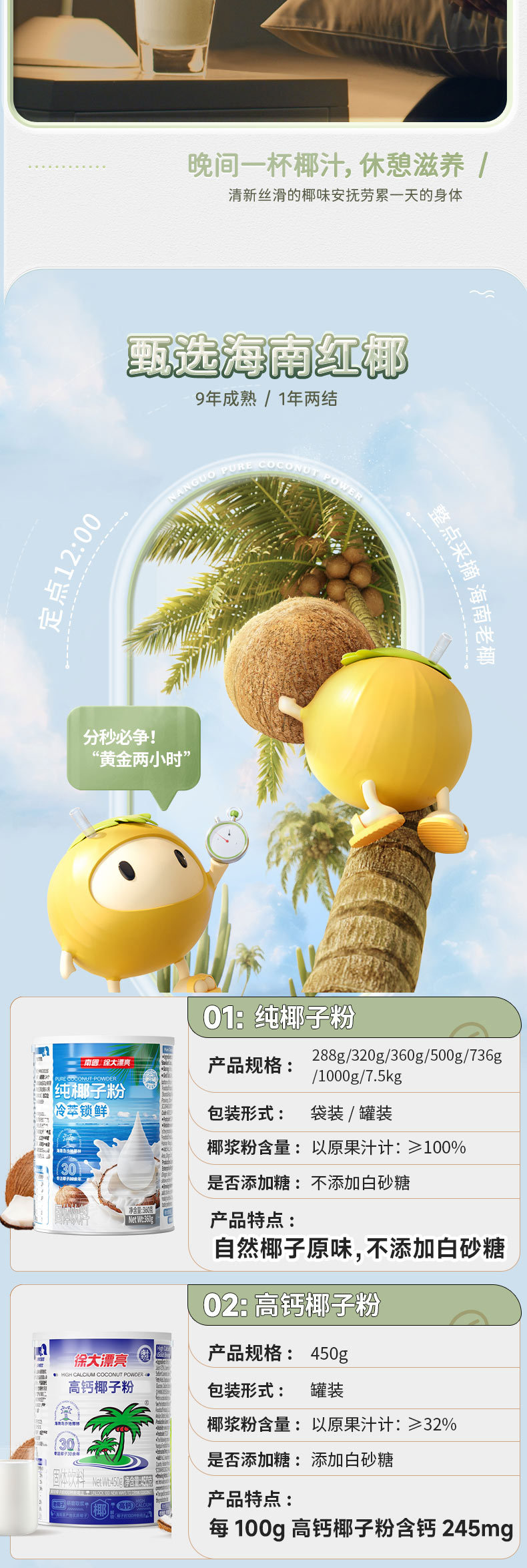![]() | 450g high calcium coconut powder | ¥22.9 / ≈ 279 ₽ | 9968 | 5689992215835 |