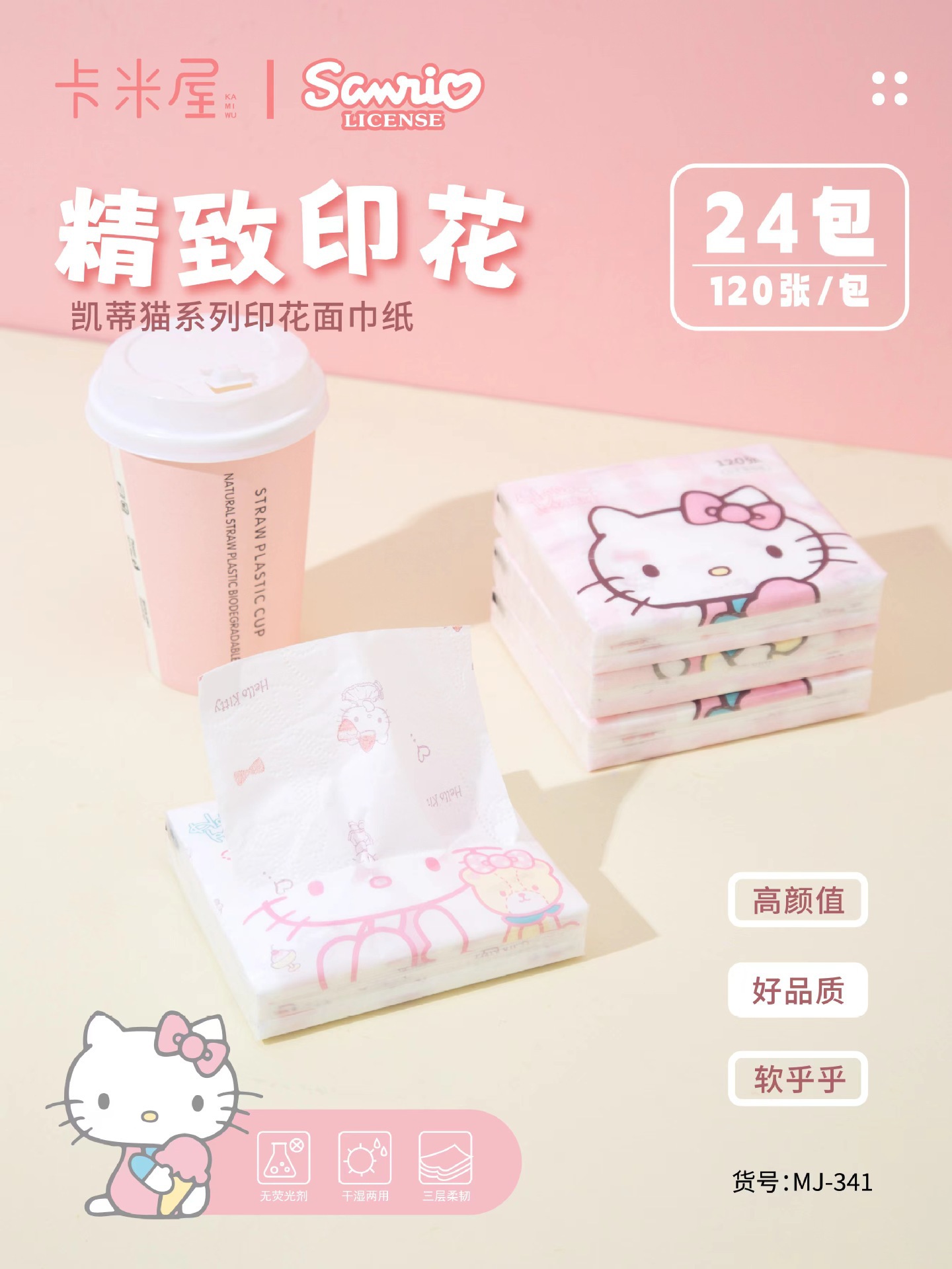 Печатные бумажные полотенца Sanrio, туалетная бумага, мультяшные упаковки, портативные, носовые платки из древесной массы, оптовая продажа
