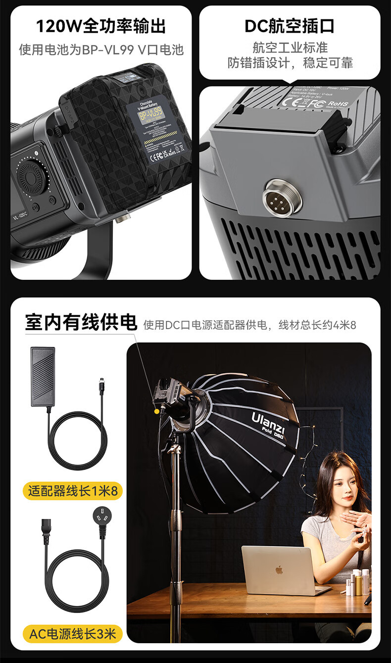 Ukrainezi отличный корзина Vl120Bi 120W двухцветная температура заполняющая лампа V-Port кино и телевидение всегда включенный свет (с