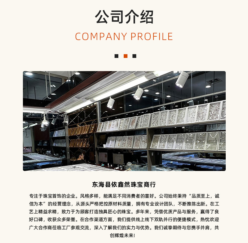 我厂所生产的银饰品,都是国际标准含银量的,从珠宝铸造到细工处理到抛光都要求精益求精,再加上高质量的电镀三层白金,使得商品保色时间长,不易腿色,为我们的客户提供良好的保障。成为全国各地实体珠宝店,淘宝店,天猫商城的供应商。