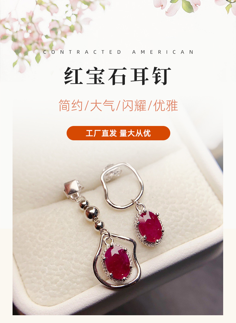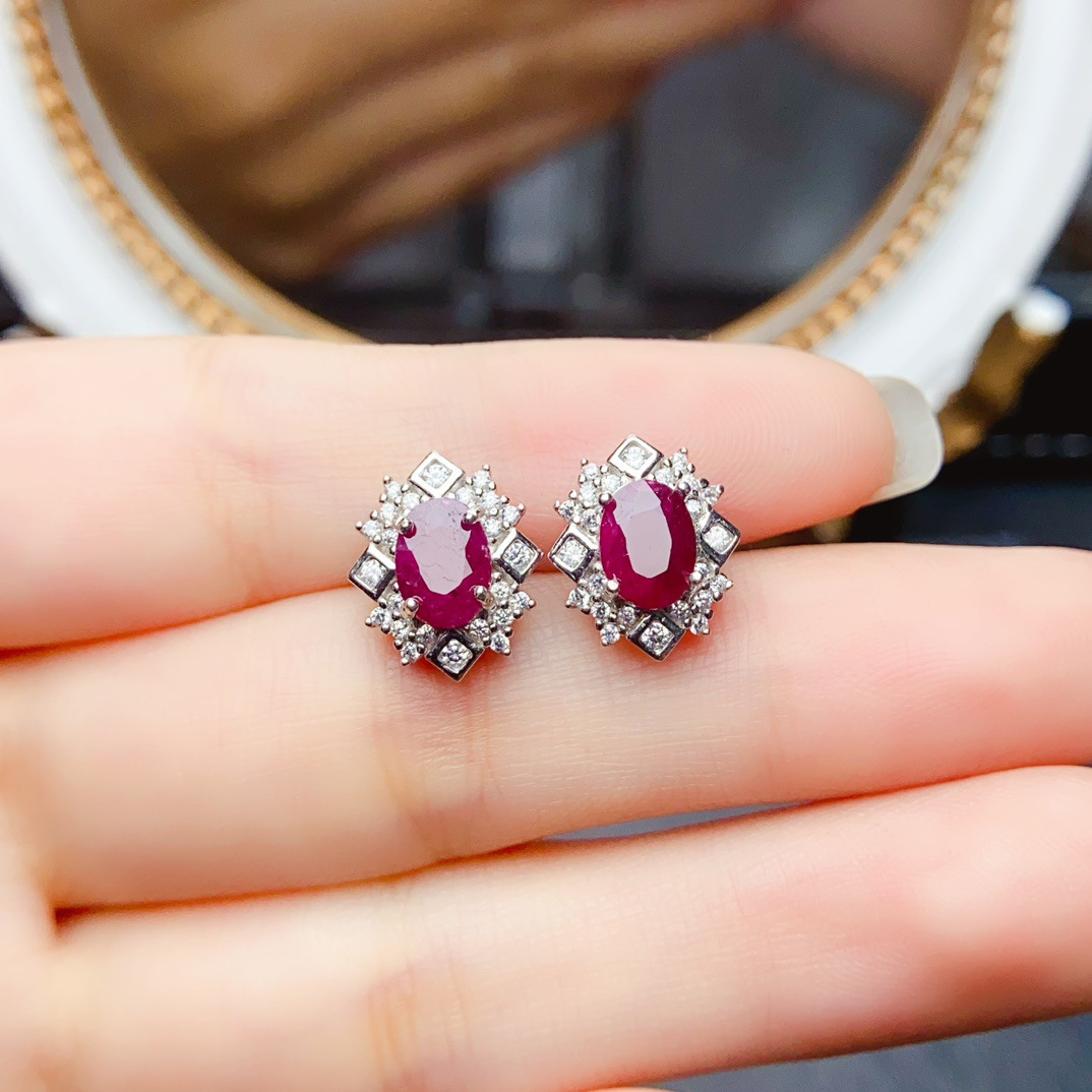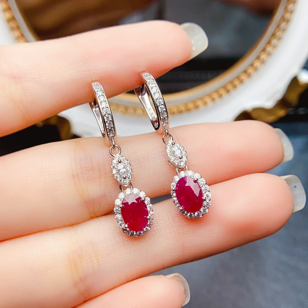 Amazon кросс-бордерные натуральные рубиновые серьги S925 серебро, нишевые, высококачественные 5*7, оптовая продажа от фабрики