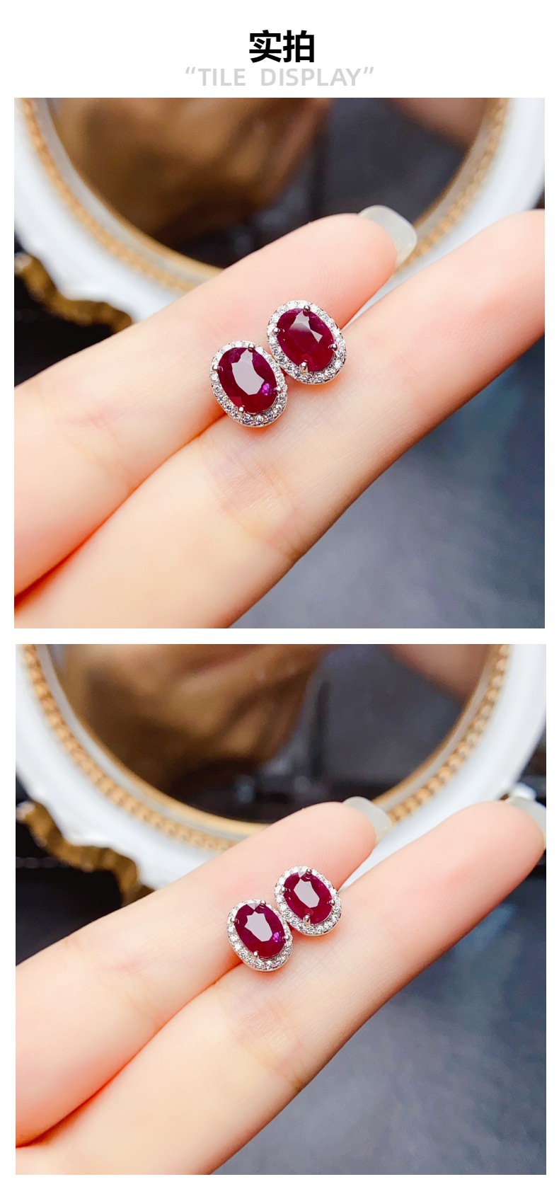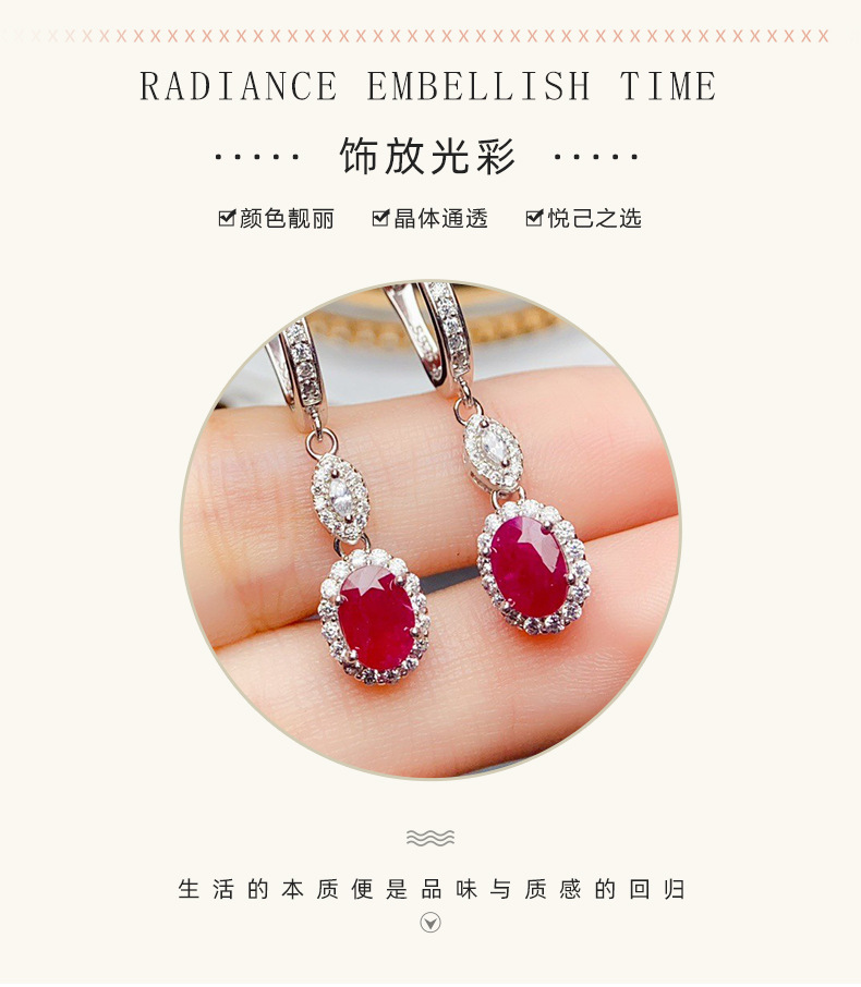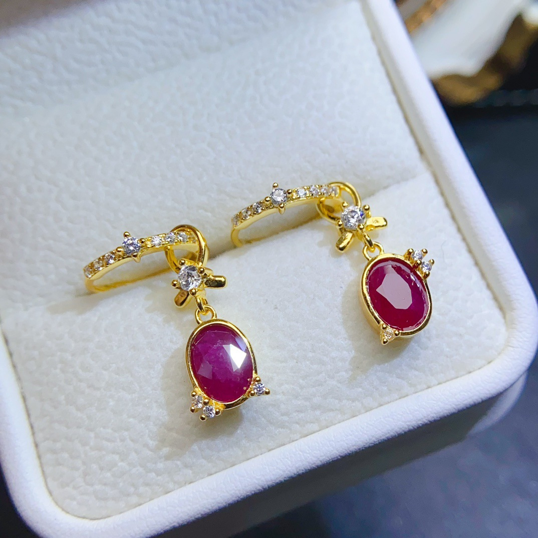 Amazon кросс-бордерные натуральные рубиновые серьги S925 серебро, нишевые, высококачественные 5*7, оптовая продажа от фабрики