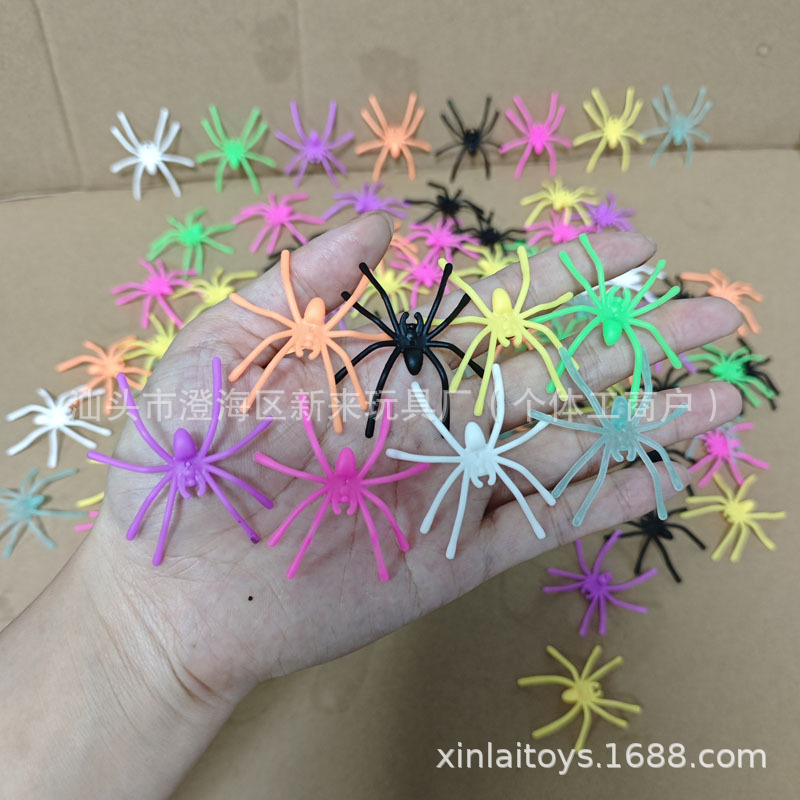 Реквизит для декораций Хэллоуина, черные пластиковые маленькие пауки, кросс-бордерные цветные фальшивые игрушки-пауки