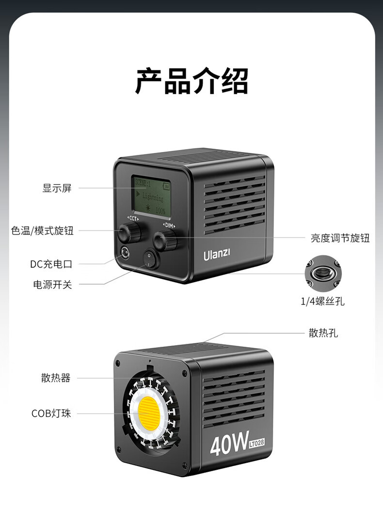 Ulanzi Lt028 40W ручная заполняющая лампа (один свет) встроенный аккумулятор двойной цвет