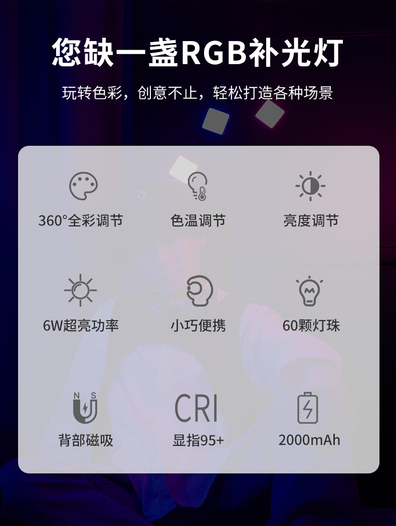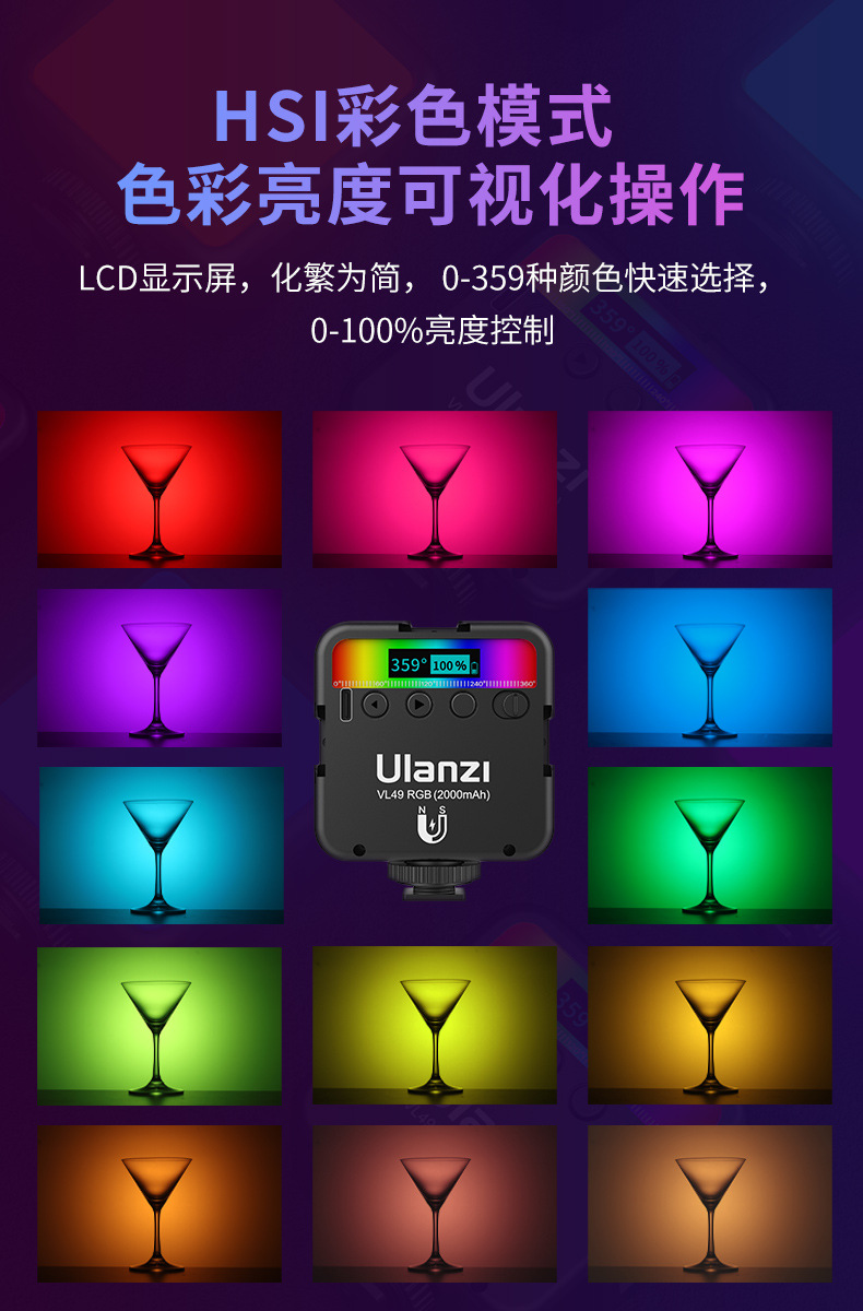 Ukrainezi отличный корзина Vl49 RGB магнитная полноцветная заполняющая лампа портативная LED карманная двухцветная камера