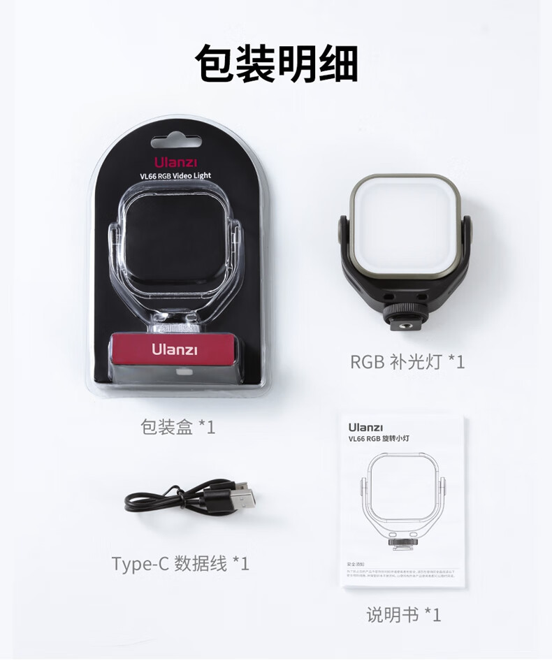 Ulanzi Vl66Rgb вращающаяся заполняющая лампа полноцветная заполняющая лампа портативная LED карманная двойная