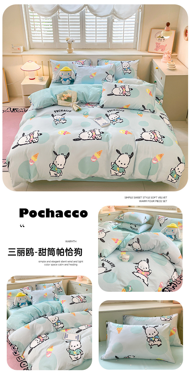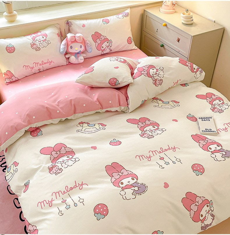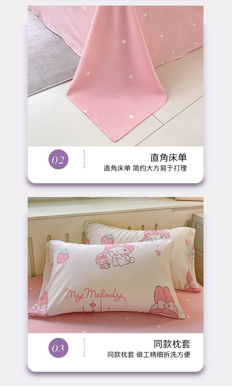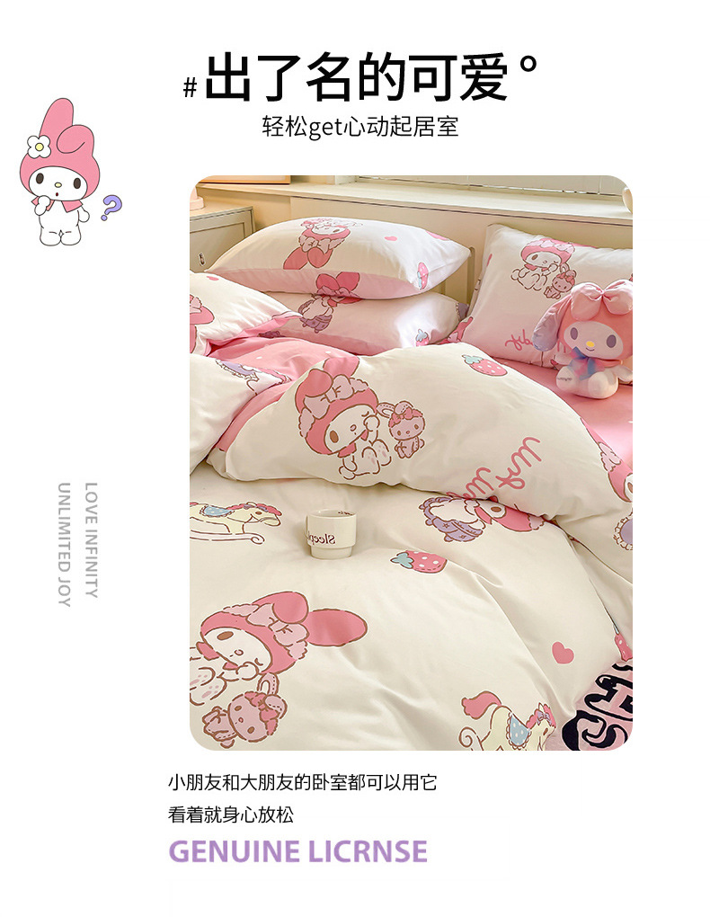 [Оригинальные товары Sanrio] Четырехпредметный комплект постельного белья с мультяшным дизайном, для студентов, оптовая продажа