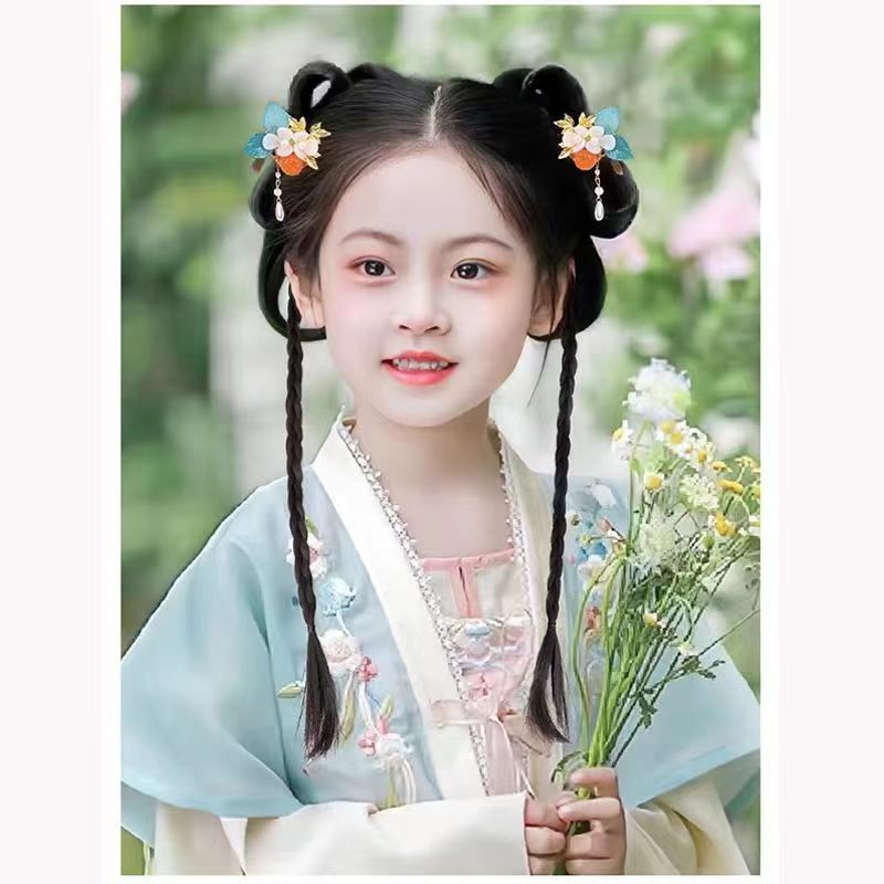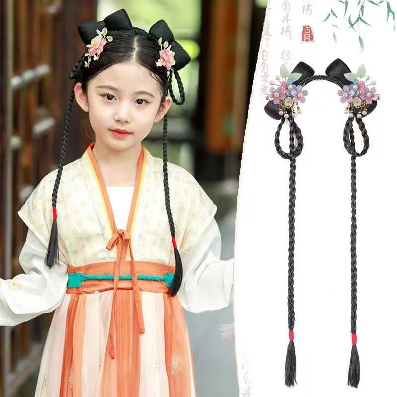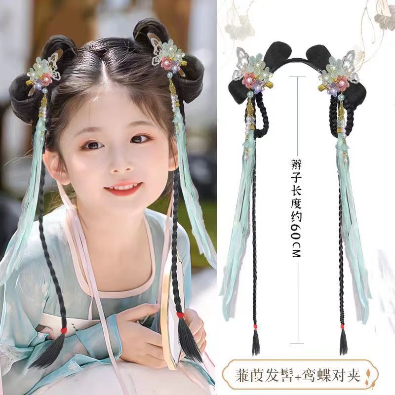 Детский ханфу парик антикварный интегрированный стиль бантик древний костюм универсальный набор для волос головной убор сценическая производительность диска для волос