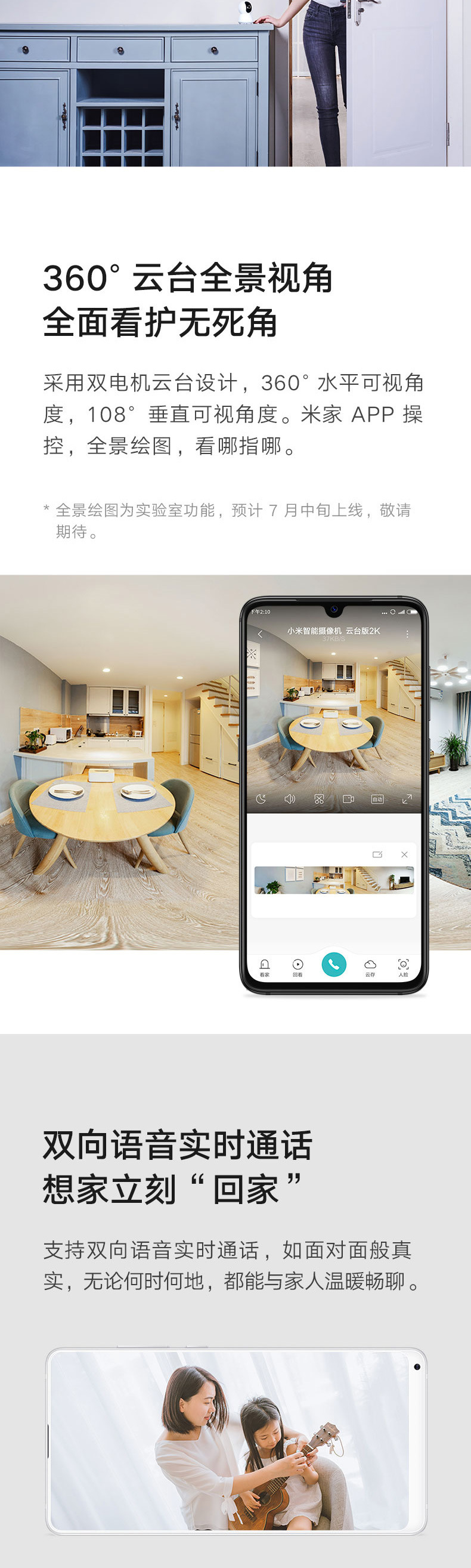 Умная камера Mijia 2K PTZ, панорамная HD камера для дома, 3-осевой удаленный доступ
