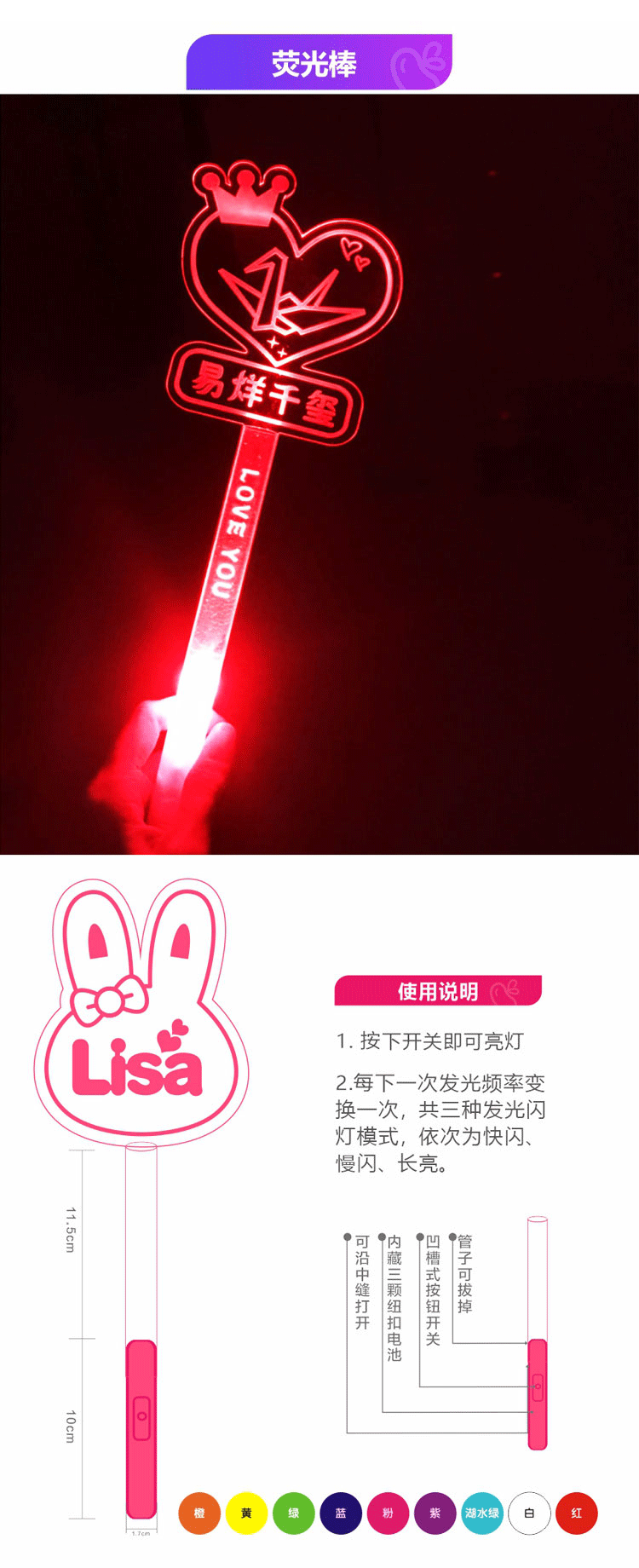 Имя класса, детская карточка, индивидуальная флуоресцентная палочка, поддержка для фанатов