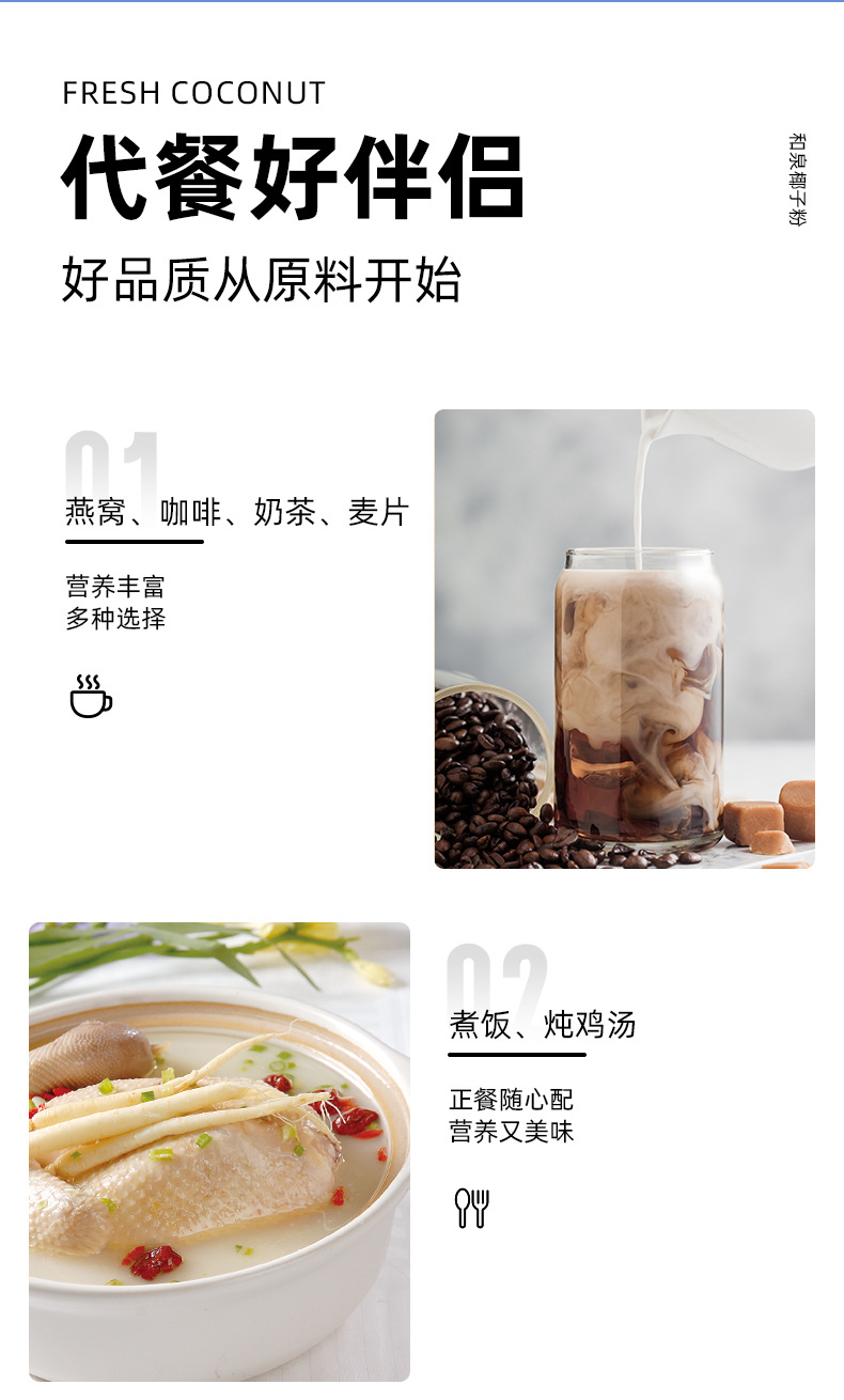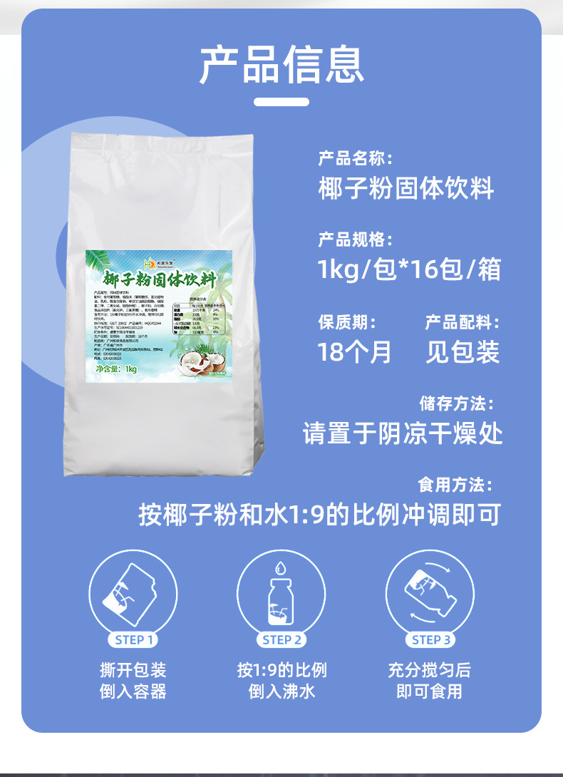 Порошок кокоса 1кг мгновенный ароматный кокосовый молоко Специальный порошок для магазинов молочного чая Чистый кокосовый порошок Замена кокосового молока в наличии