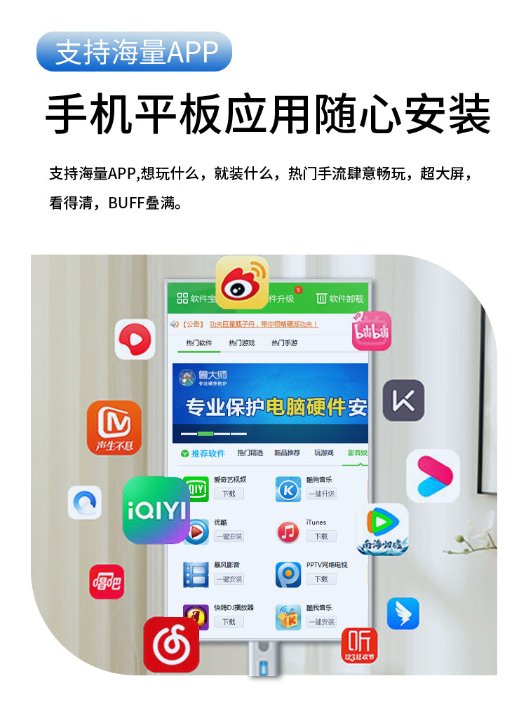 32-дюймовый экран, беспроводной живой экран, мультимедийный сенсорный экран, смарт ТВ
