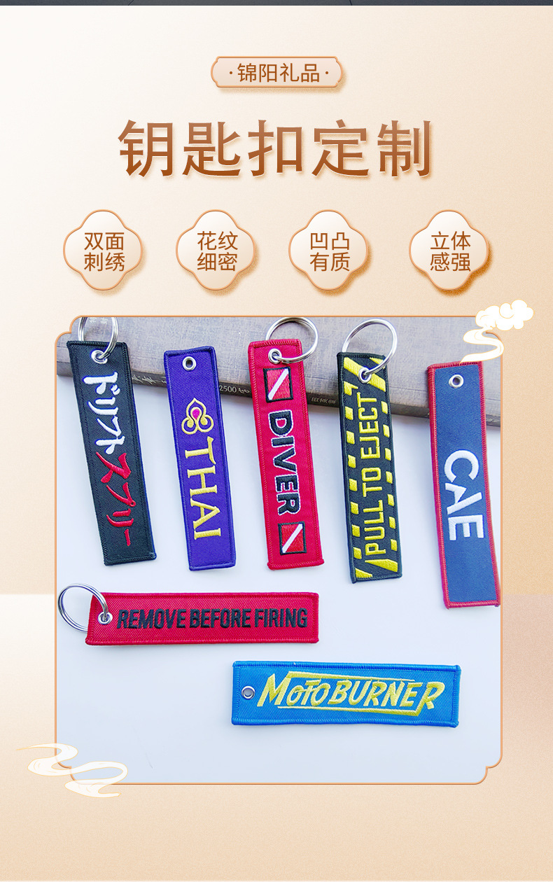 Индивидуальный двусторонний брелок с вышитым английским логотипом, подарочная упаковка